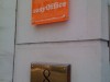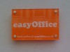 Easy Office London office sign bright orange corporate branded sign. reversely printed detail fitted to raised mounted 10 mm glass look acrylic panel.