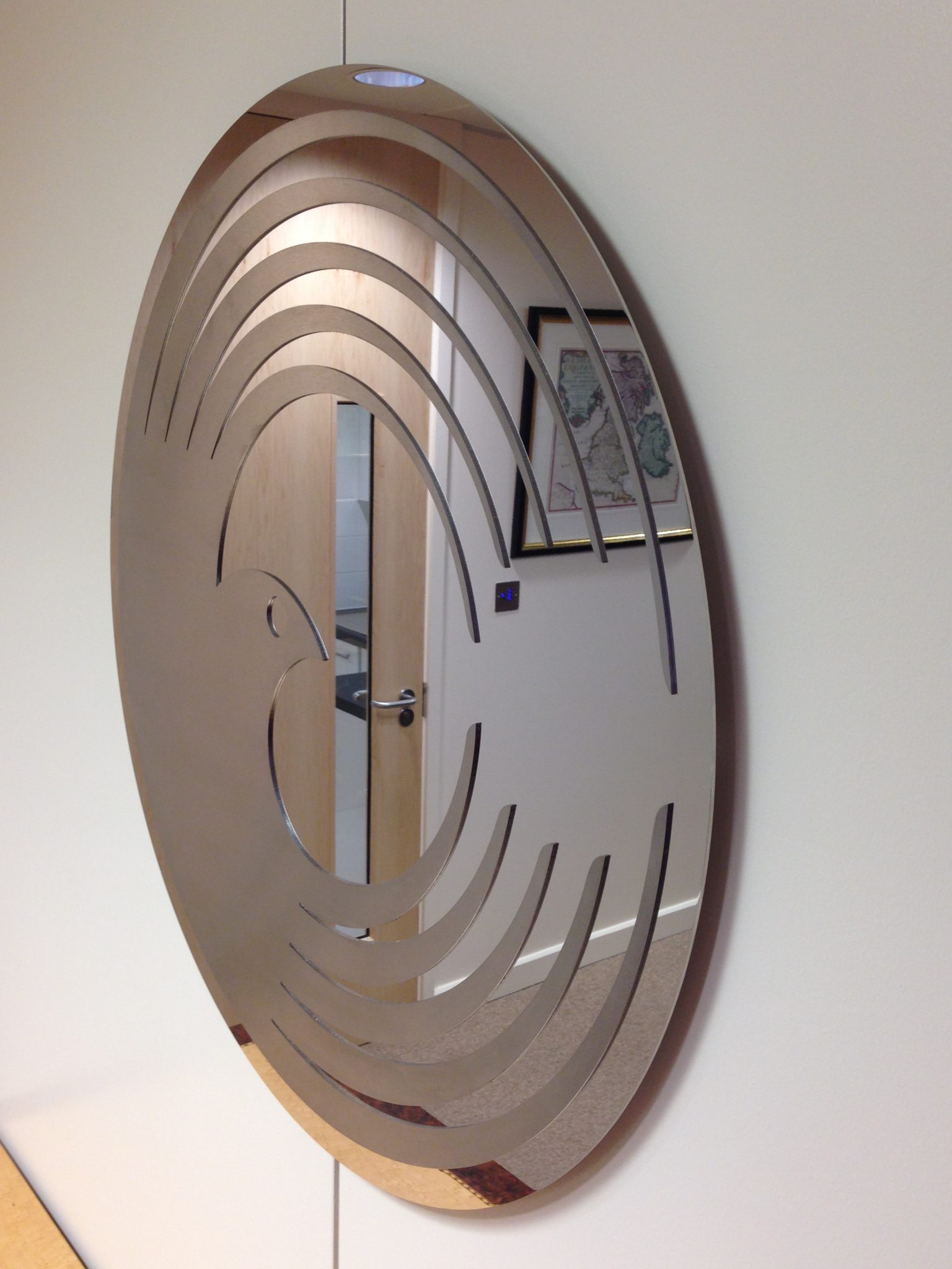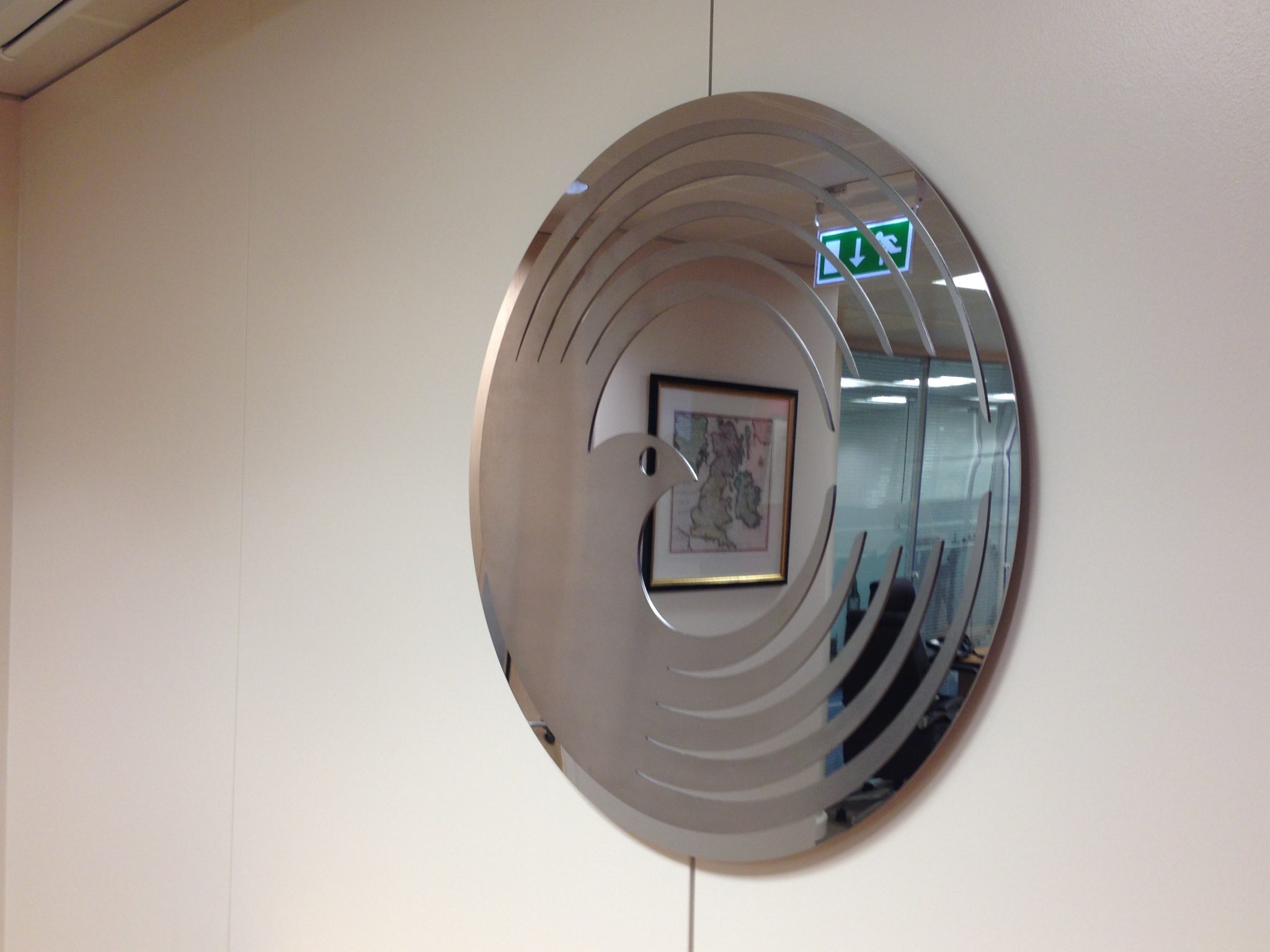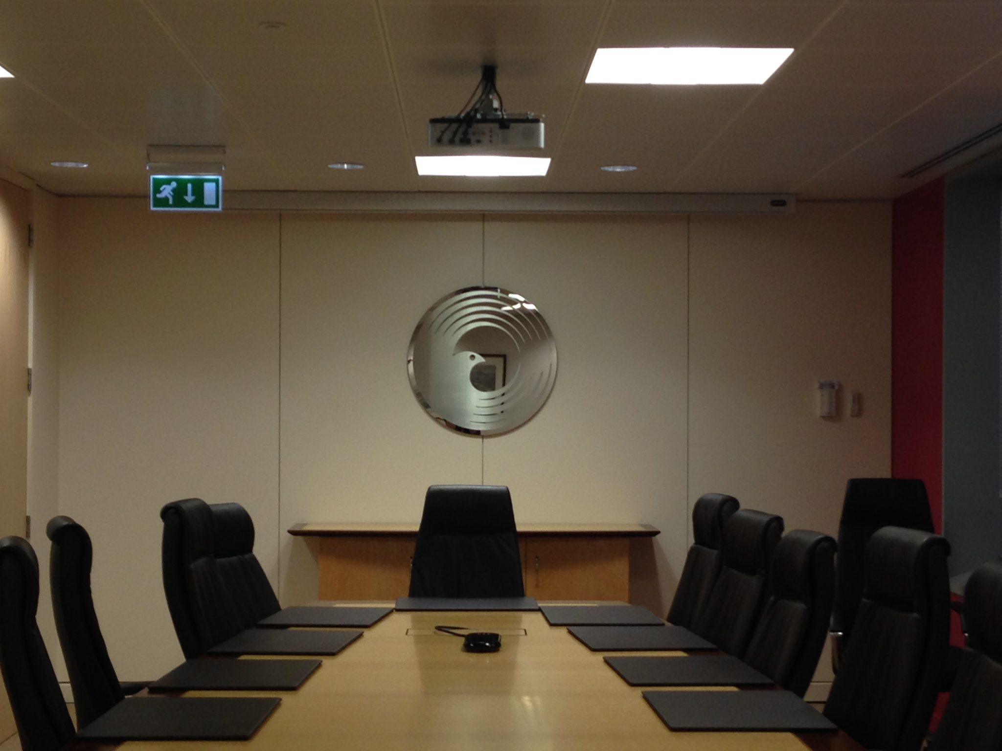 Board Room Metal Company Crest Elegant metal sign with frosted detail to depict company logo. Used as a crest in the company board room and internal meeting rooms. Corporate SignsMetal SignsOffice Signs Share this sign