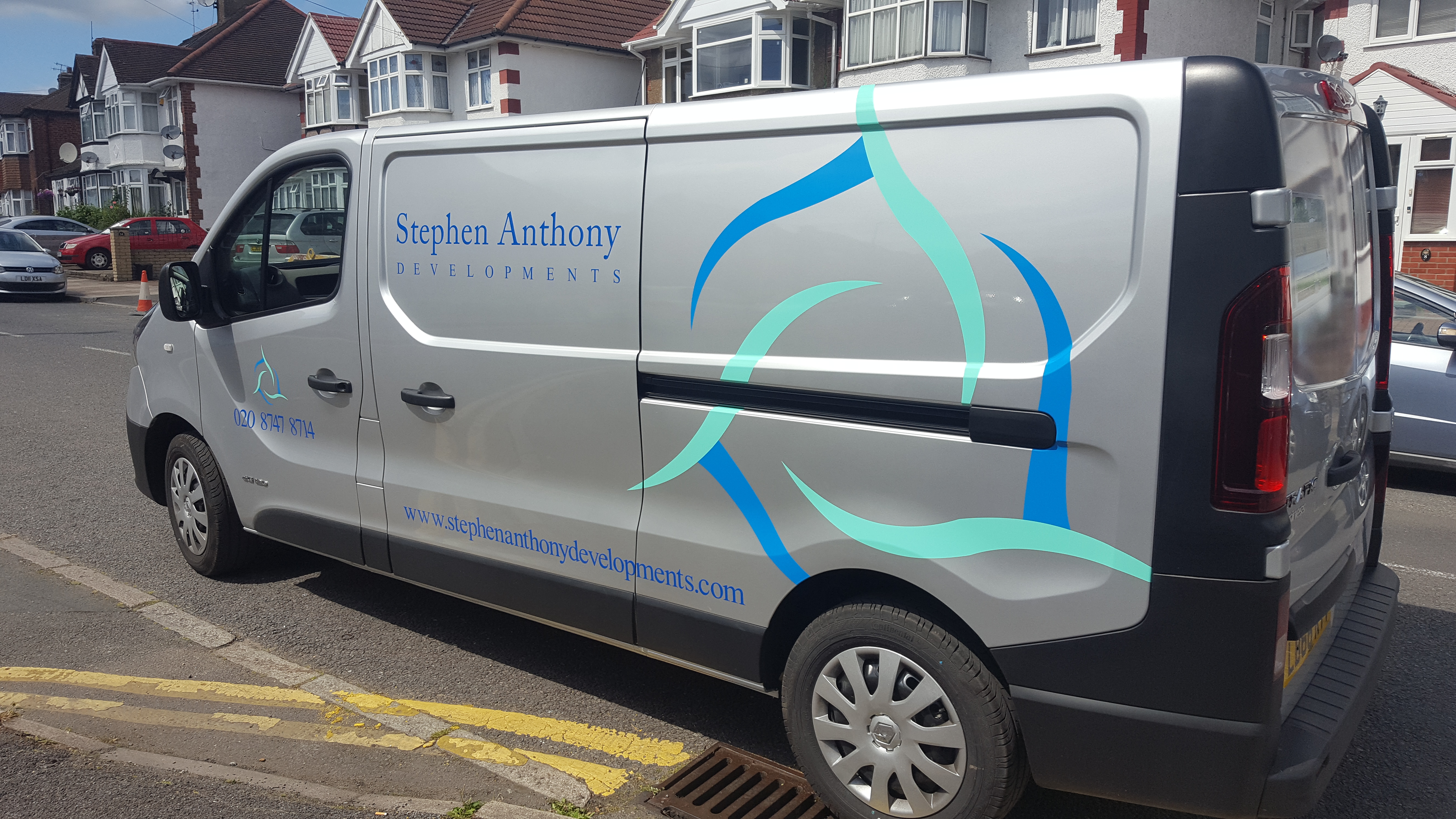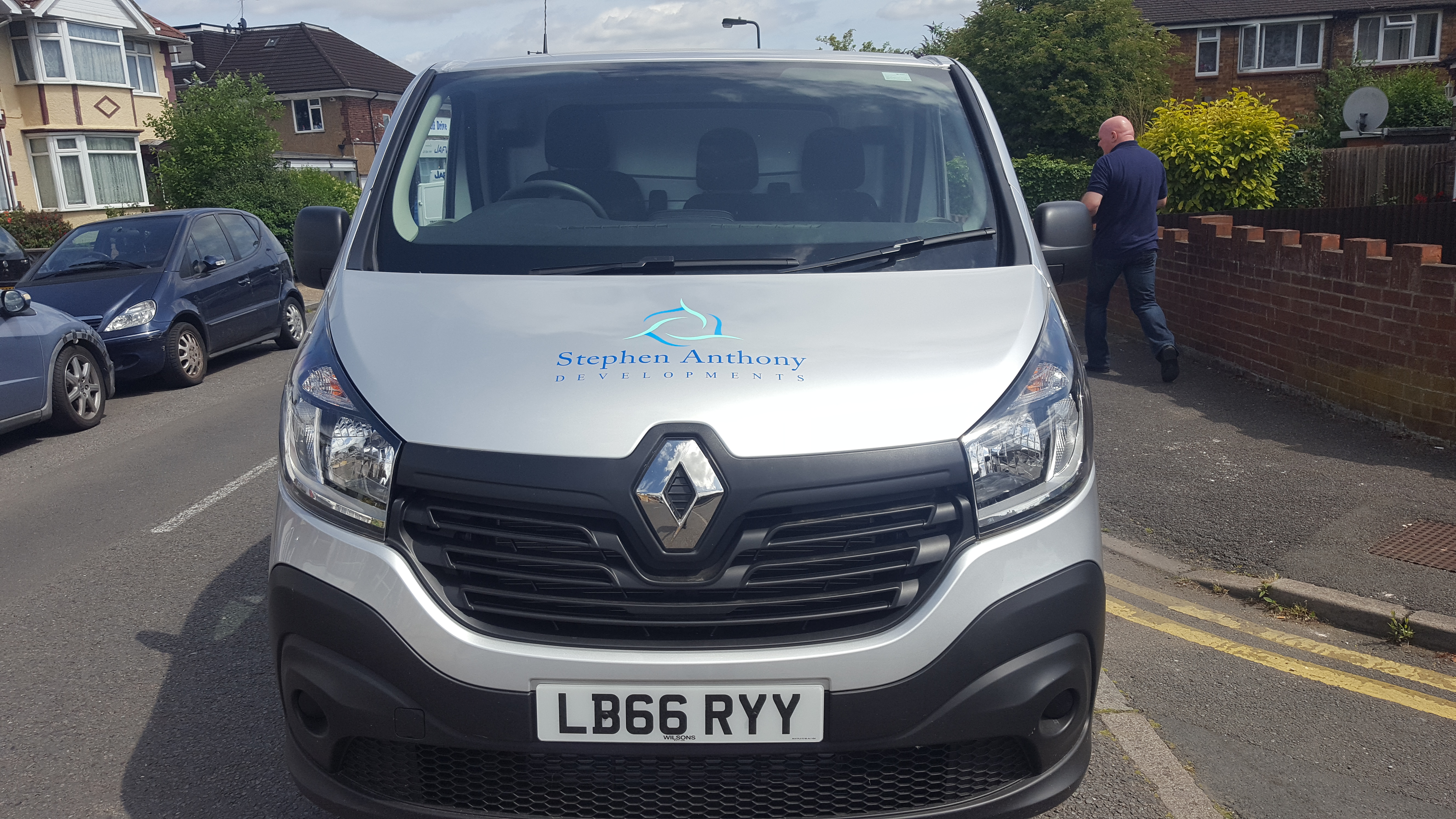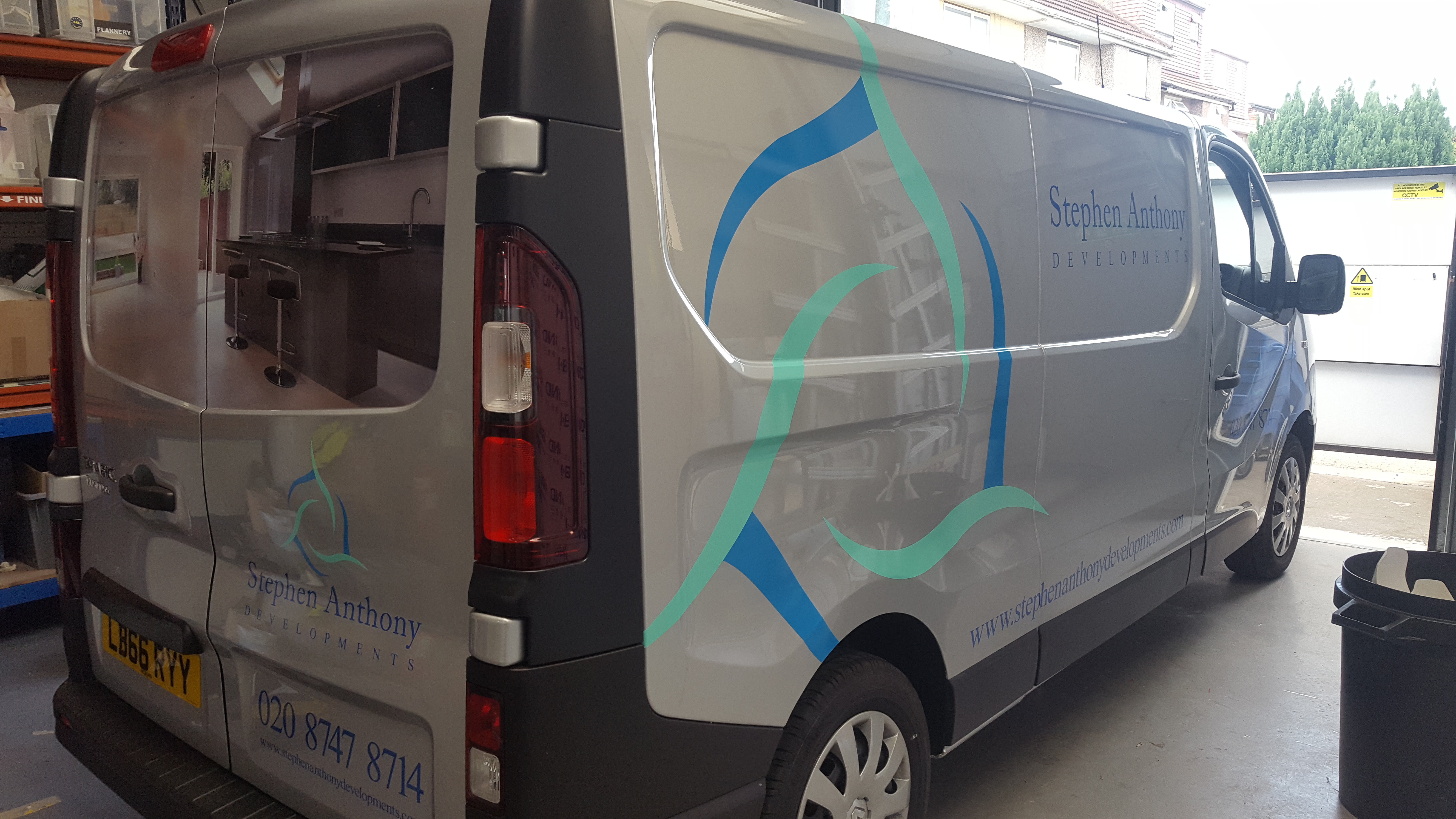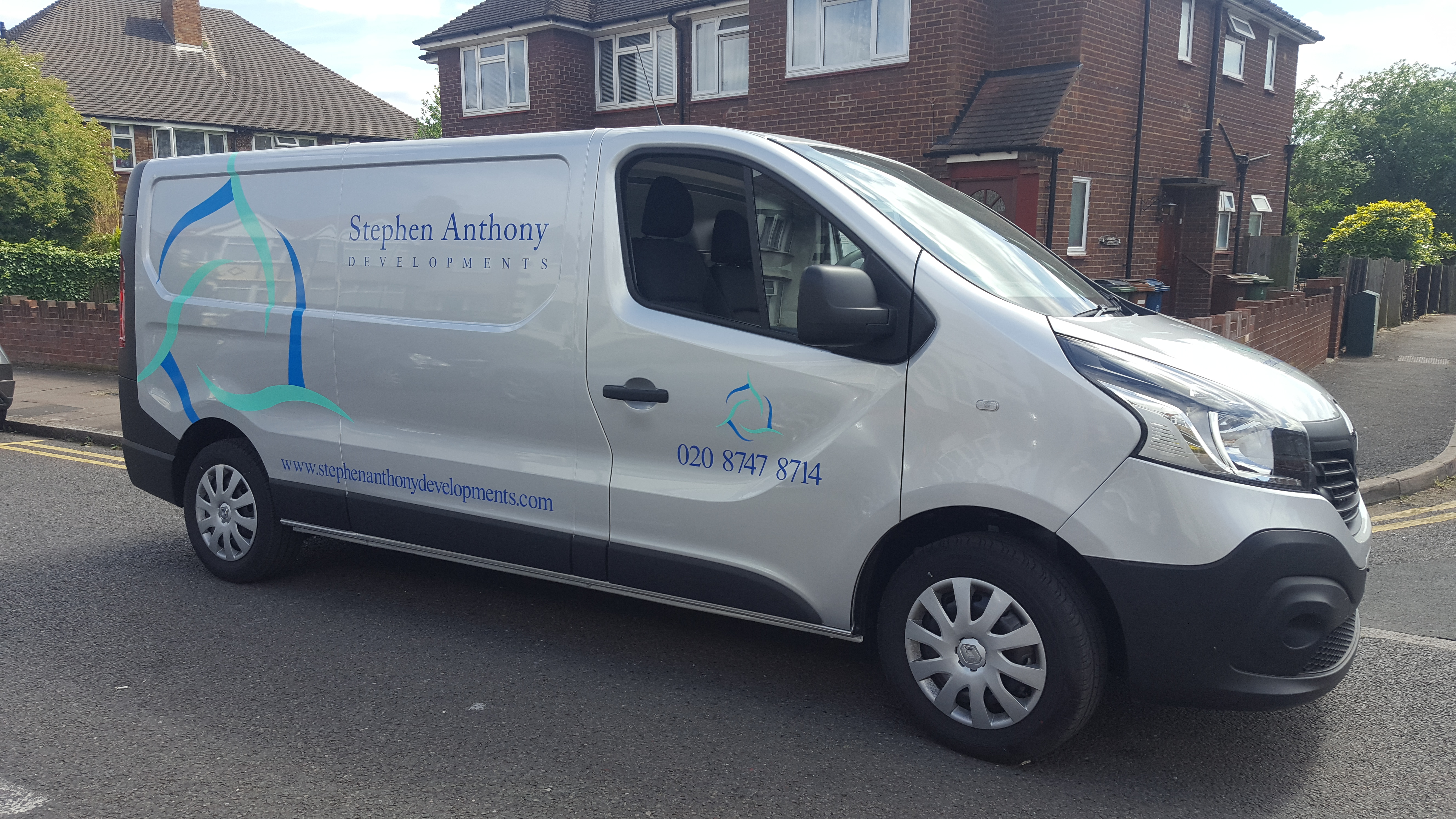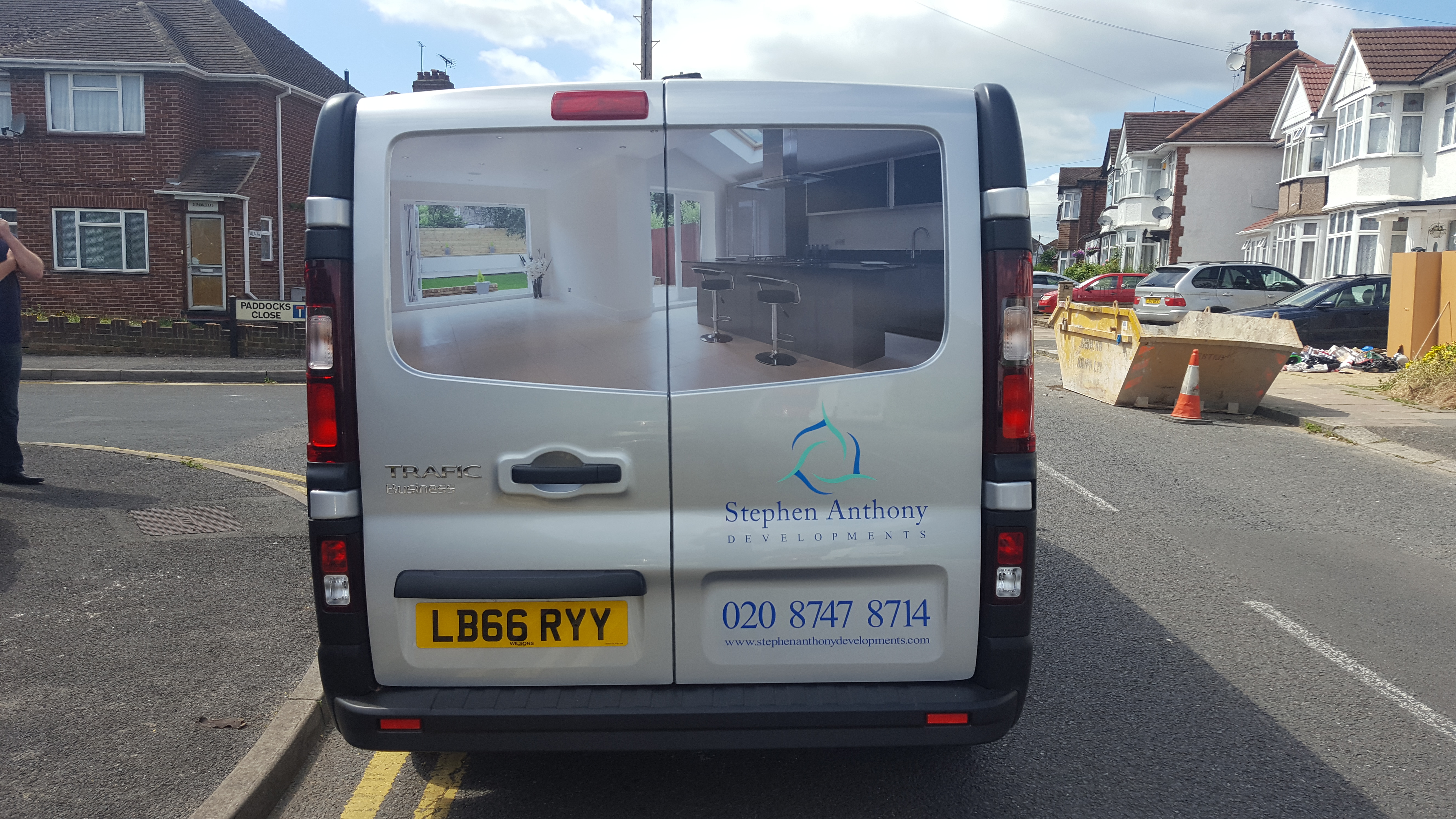 Builder's Van Sign With Full Colour Digital Photo Panel Wrap We added the logo and graphics to the side of the van and included a full colour photograph on the entirety of the back window panel for additional detail and style. Van SignsWrap Share this sign