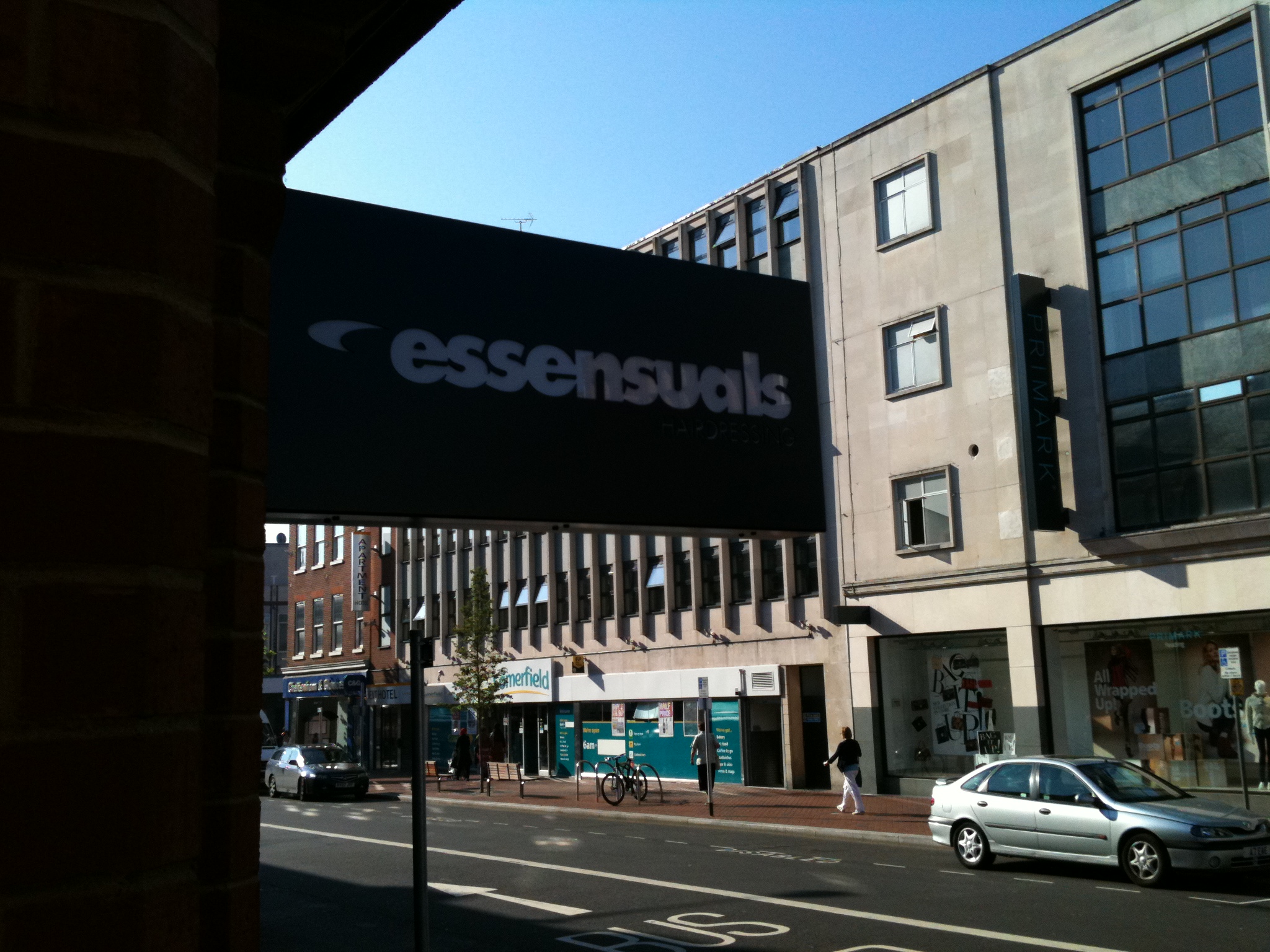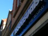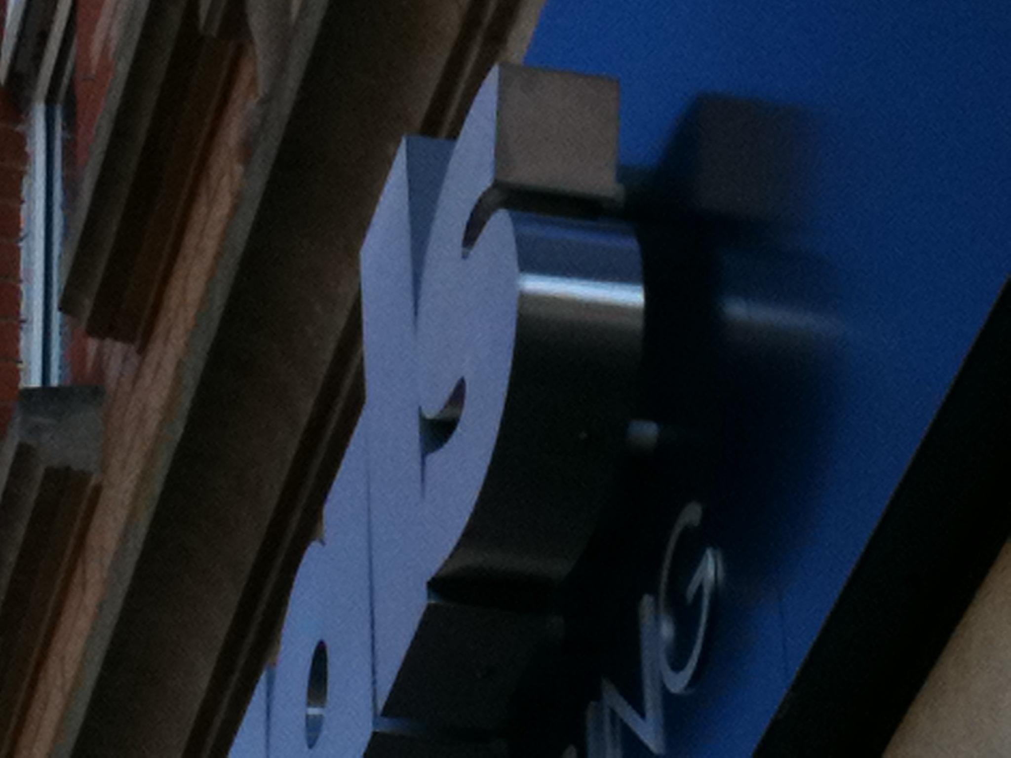 Built up 3D metal letters mounted on solid dark blue fascia for London hairdresser shop sign.