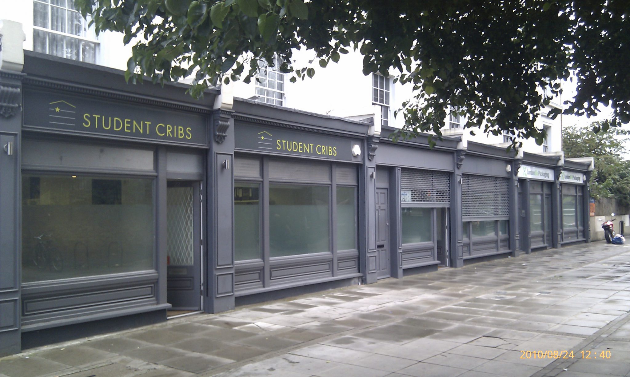 Some of the classiest shop signs are the simplest. Large blocks of solid colour that extend around the shop with simple gold letters can look stunningly effective and understated, two words you don't usually associate with the student letting market.