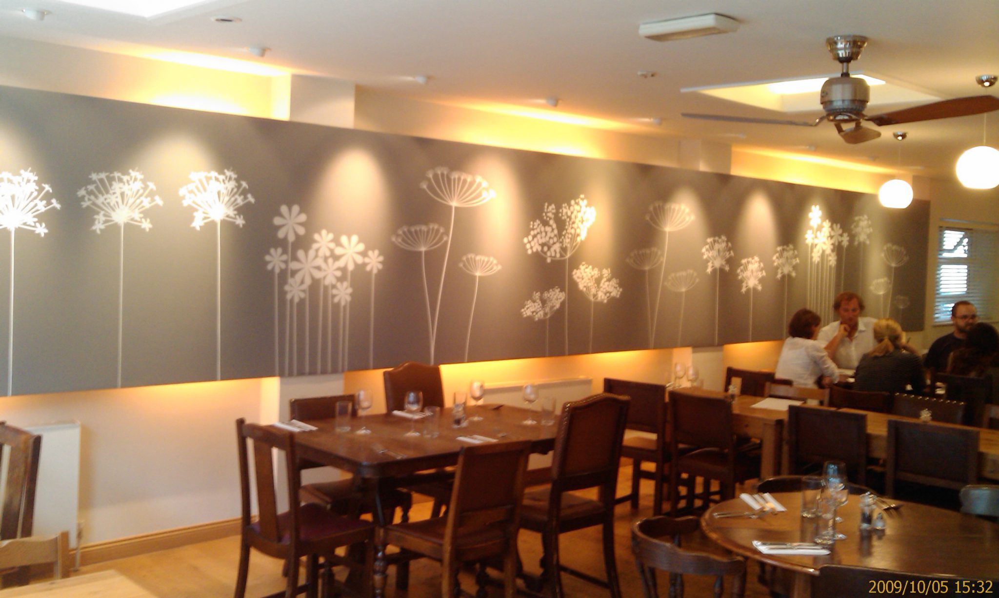 Coffee Shop Artwork Continuous pattern installed in London coffee shop, dramatically improving ambience from otherwise bare walls. Murals and wallpaperOffice Signs Share this sign