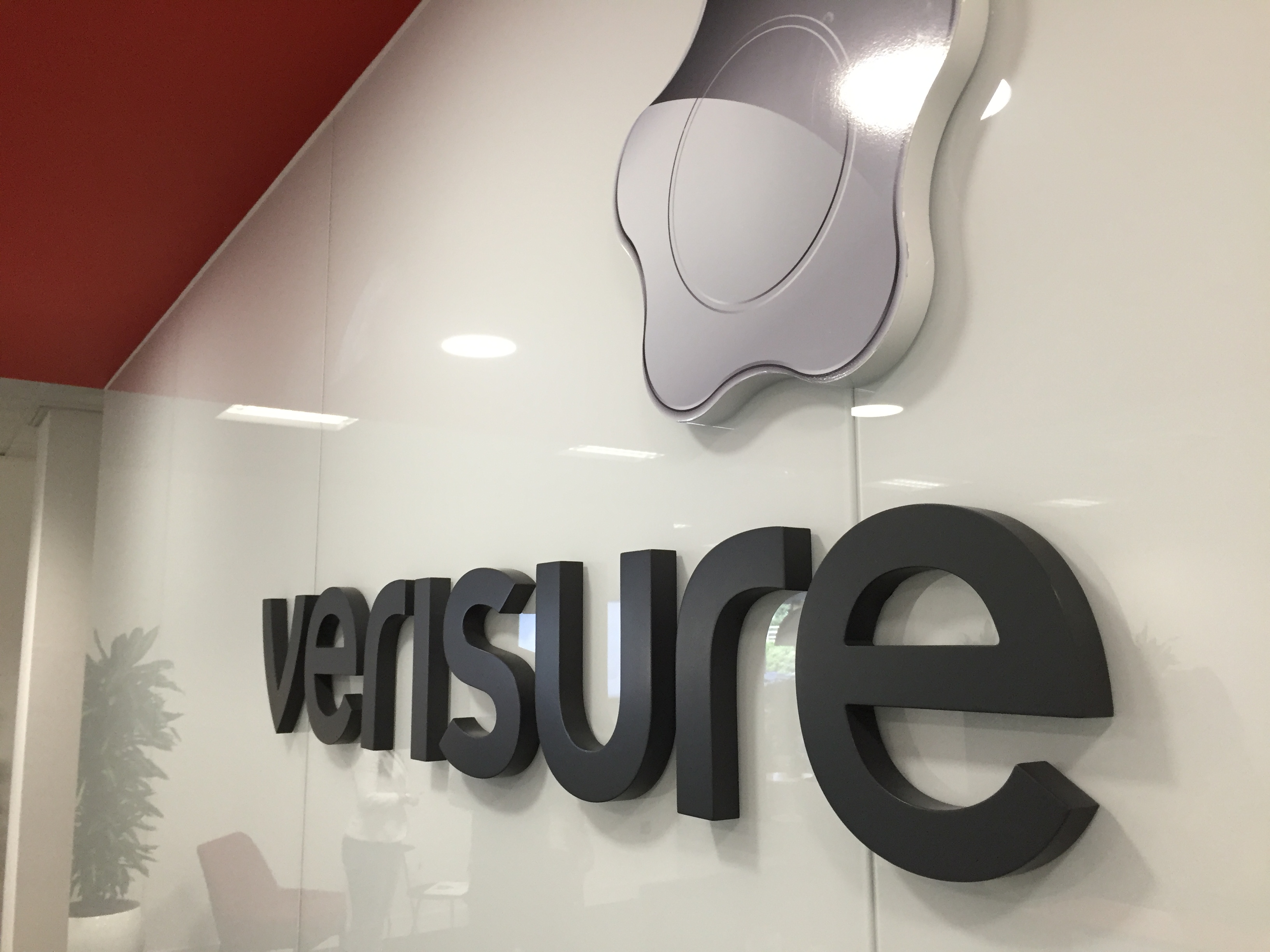 Digitally Printed Logo On Glass Digitally printed logo mounted on glass wall of reception area. Digital printing allows for highlight and shading effect. Built up 3d Letters. Corporate SignsReception signsOffice Signs Share this sign