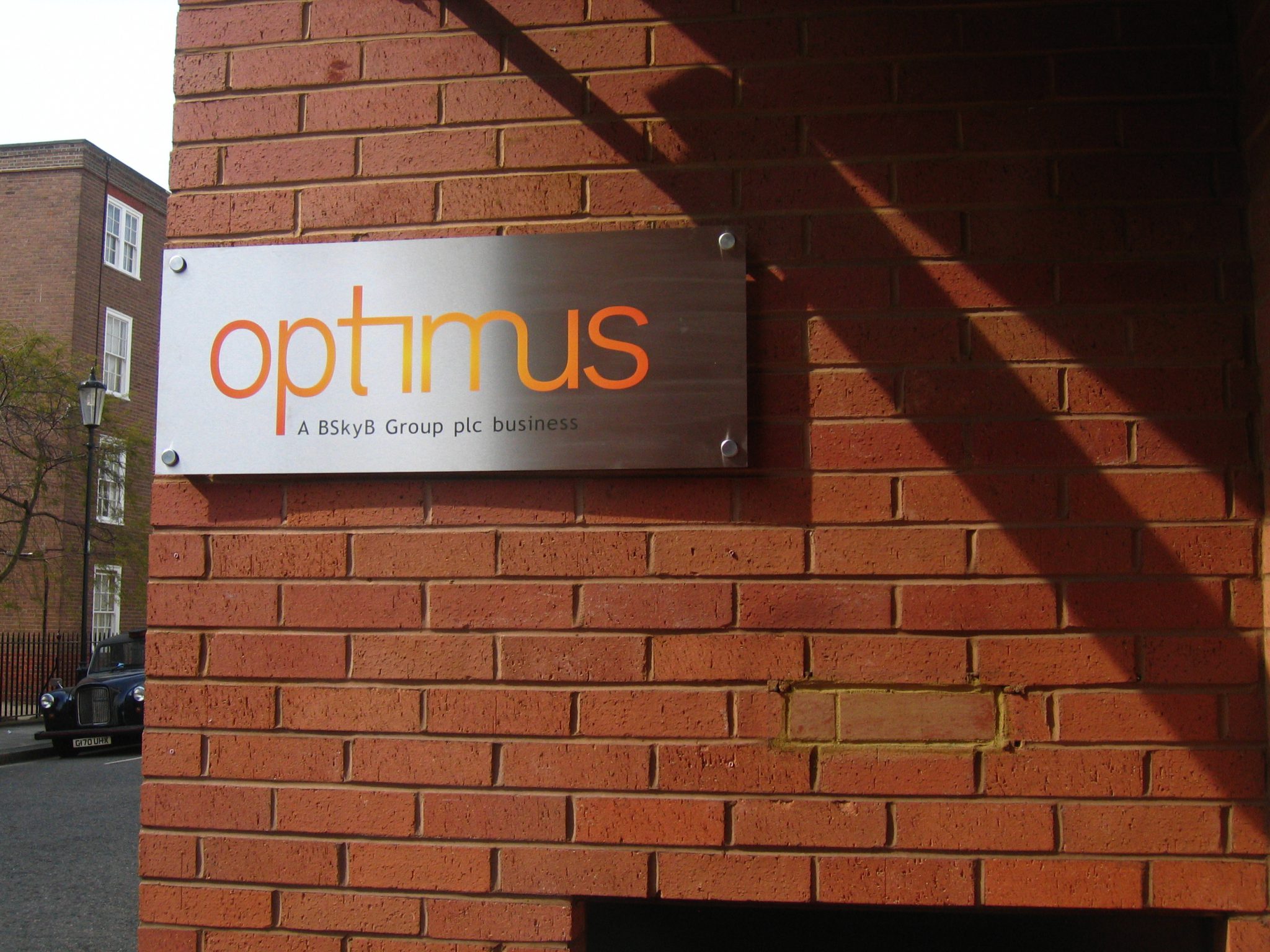 Stainless steel entrance black for offices. Brushed stainless steel with digitally printed vinyl graphics. Panel set 10mm off the wall using stand-off mounts and fixing screw heads as masked by stainless steel screw head covers.