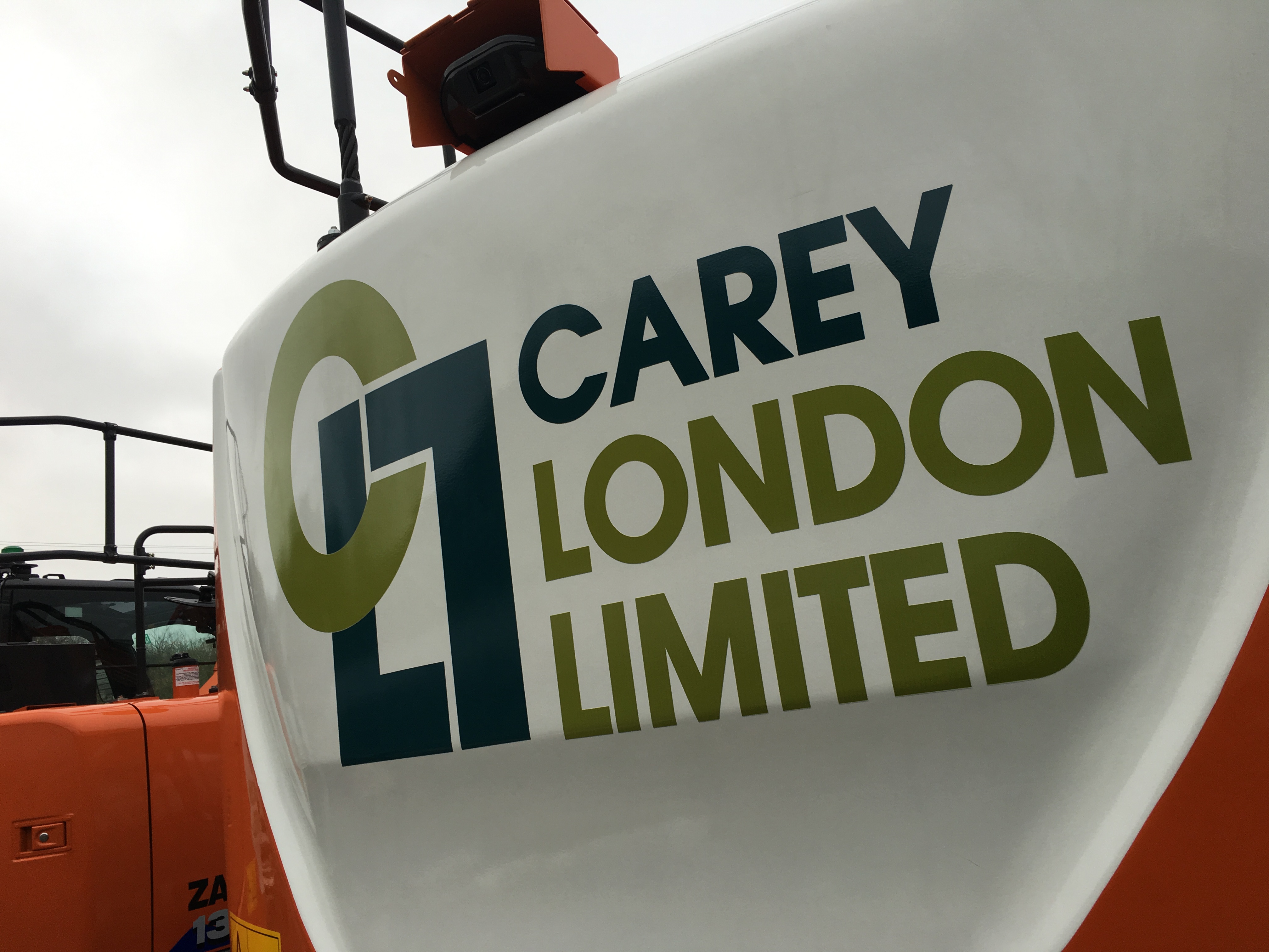Signs for Tracked Excavator and Truck For A Construction Firm Signage applied to side of tracked excavator and truck across front doors and bodywork. Construction SignsPlant and Haulage Share this sign