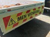 Signage applied to side, cab, front and rear of flat bed, drop side lorry for scaffolding company. Sign applied to tailgate which folds down to reveal full chevron back during loading/unloading.