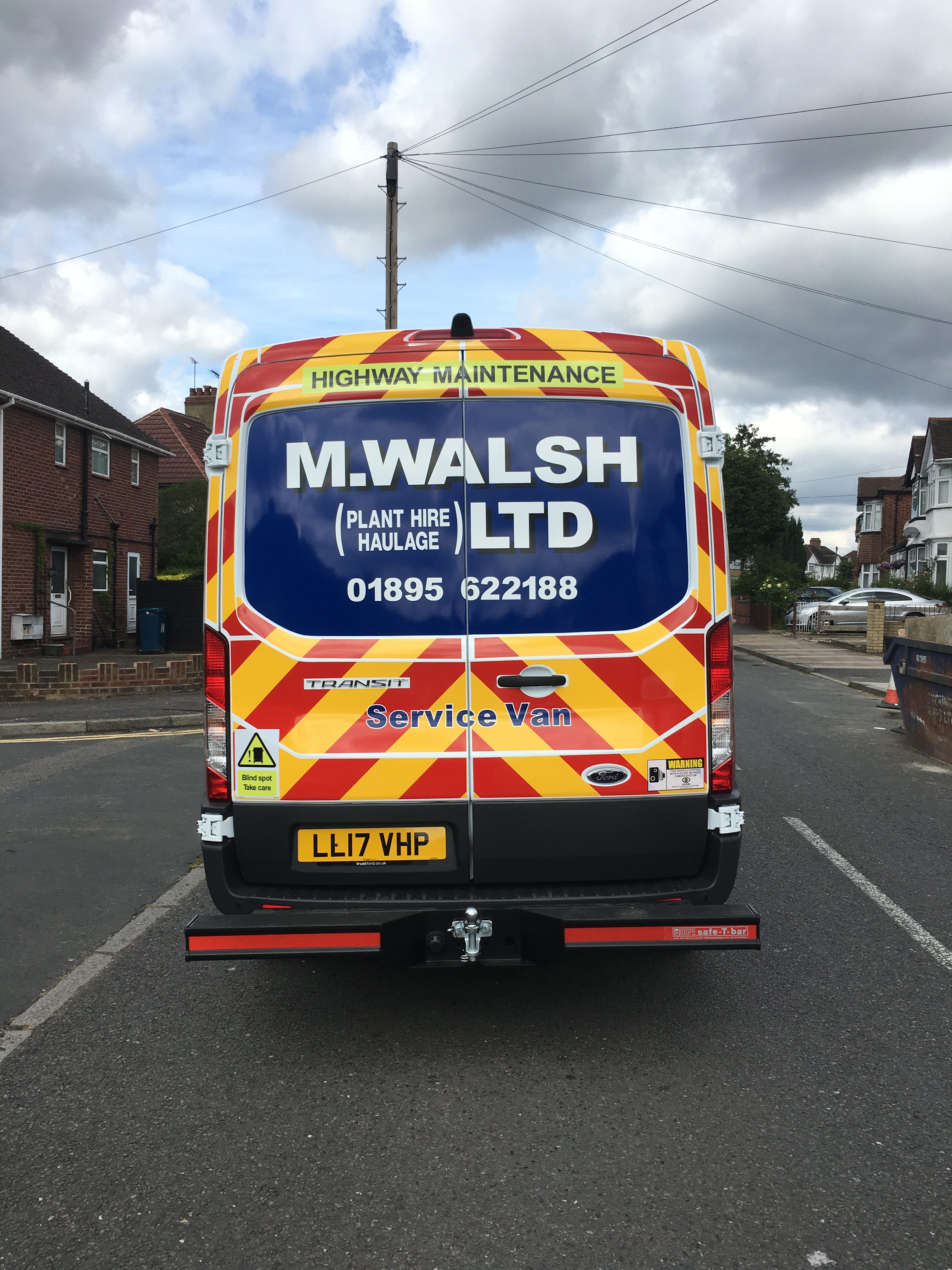 Ford Transit Service Van Graphics Ford Transit service van graphics for national plant and haulage company. Full chevron back for high visibility. Van SignsChevron Share this sign