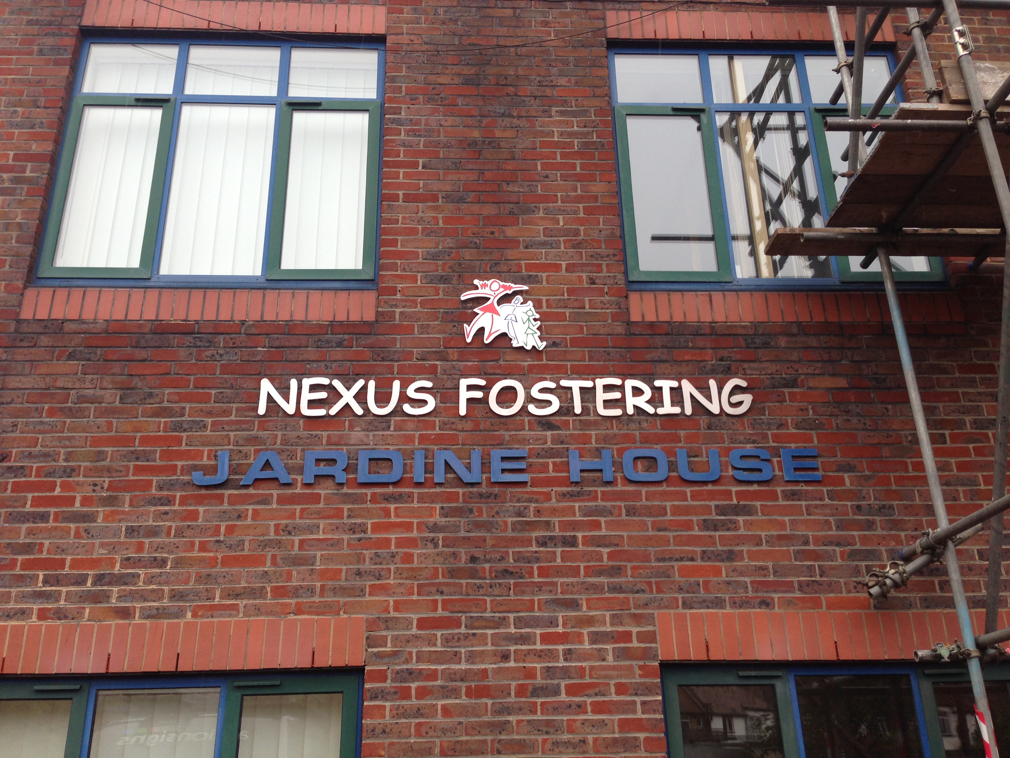 Foster Care Centre Sign Metal sign with vinyl graphics set off from the brick wall. Public Sector SignsSchool SignsBuilding SignsMetal SignsDoor Signs Share this sign