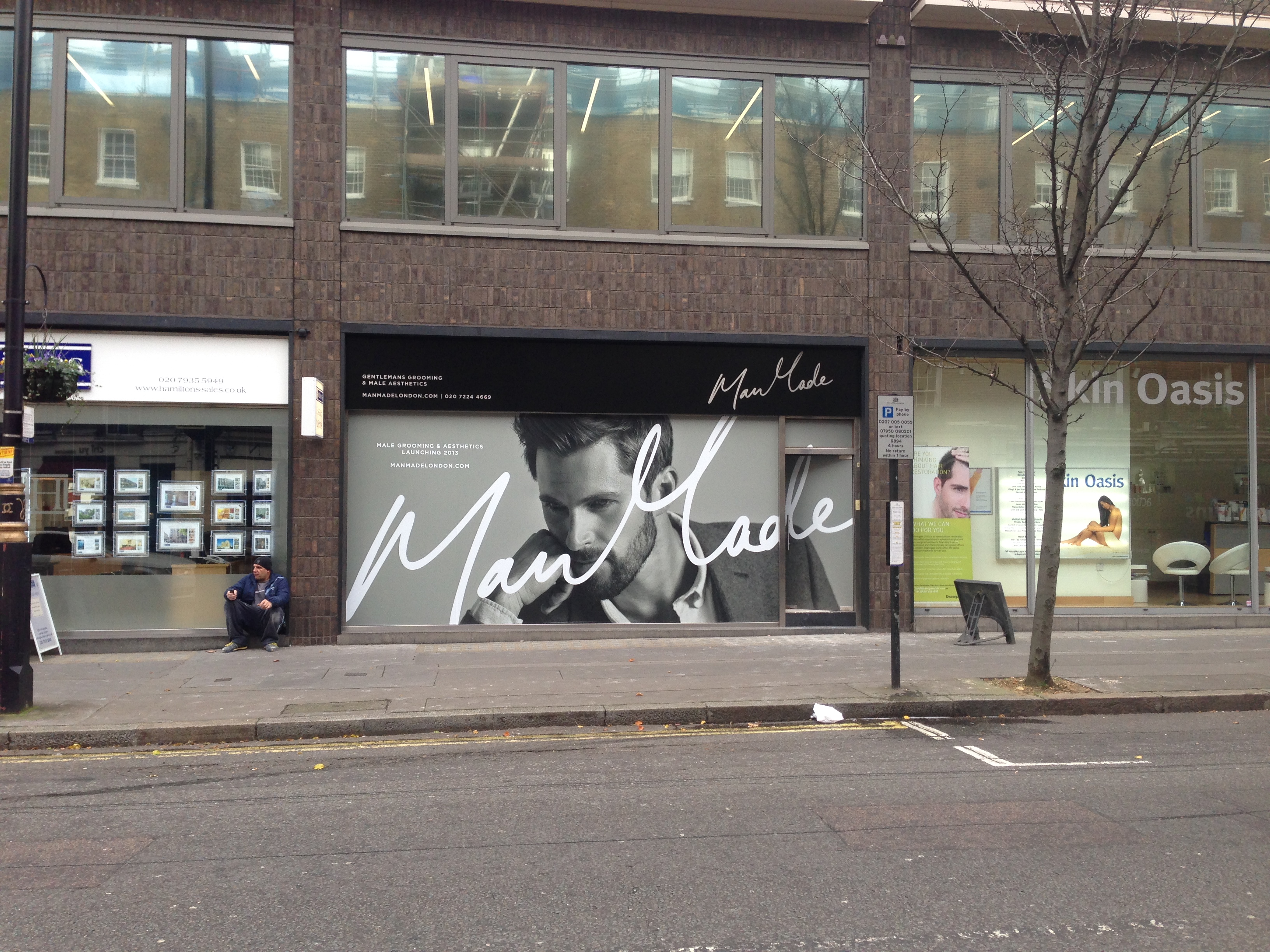 Full Colour Printed Window Graphics applied to shop window during shop refurbishment to promote the new business and obscure the building works taking place inside the shop.