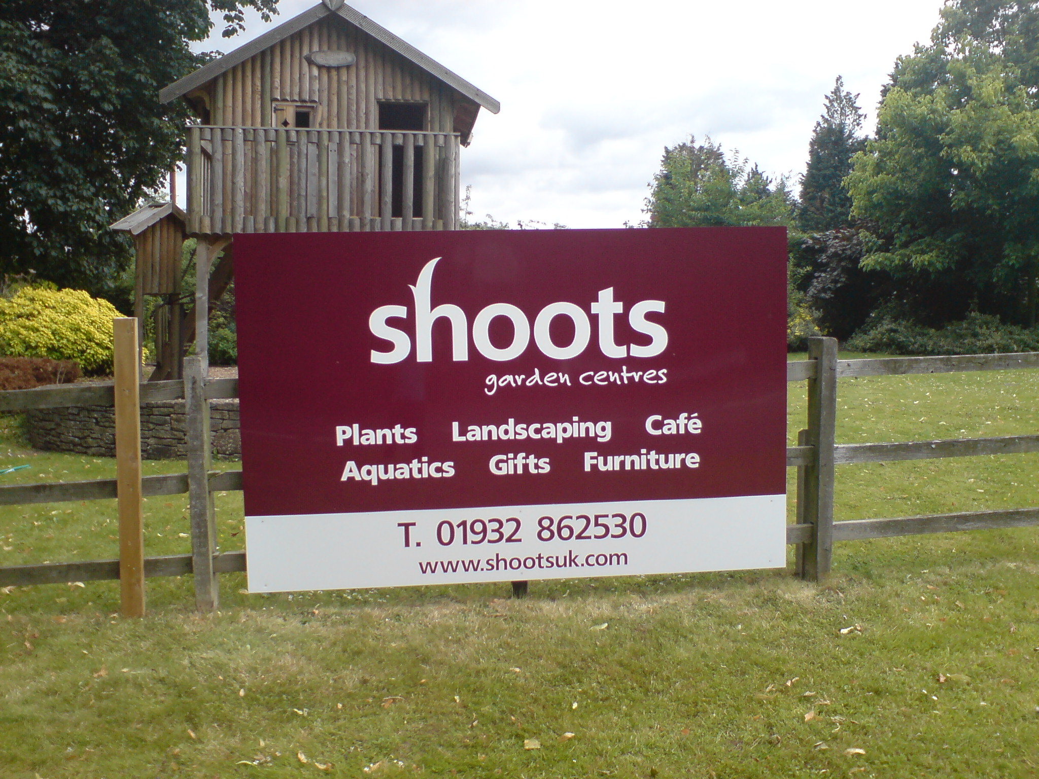 Garden Centre Signs Selection of signs displayed in various locations in a garden centre, some directional and some promotional. Shop Signs Share this sign