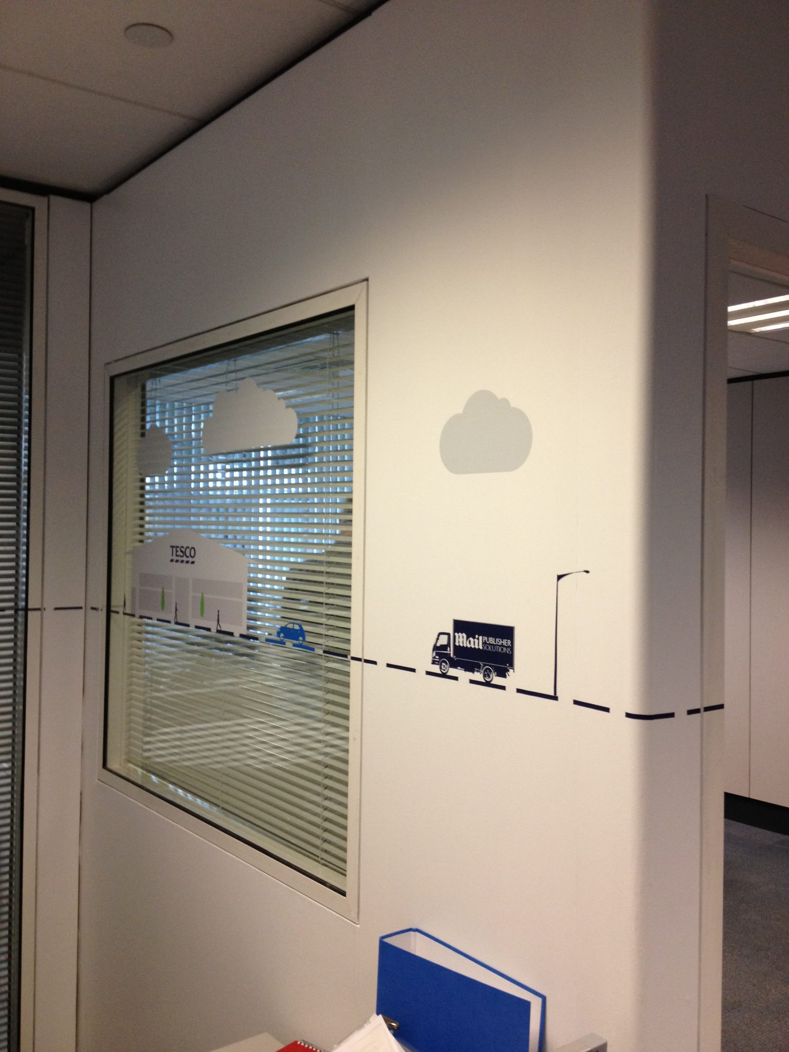 Graphic Designs For Office Walls Cost effective graphic designs applied with vinyl graphics for office walls. Murals and wallpaperOffice Signs Share this sign