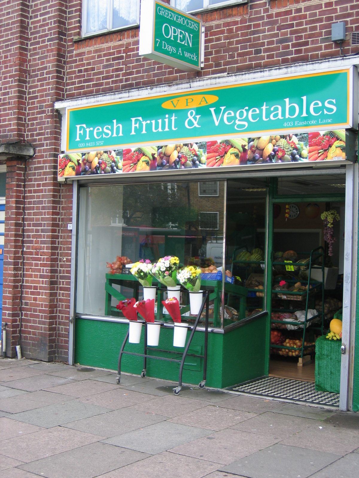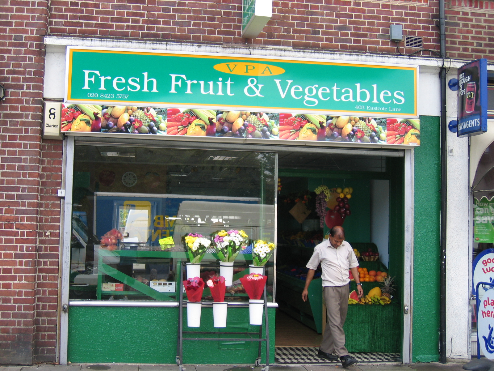 Green Grocer Shop Sign Full colour vinyl graphics for a greengrocers shop sign in London (digital printing allows for full colour photographs to be embedded within your designs). Check out Quick Quote if you want a sign like this. Shop Signs Share this sign