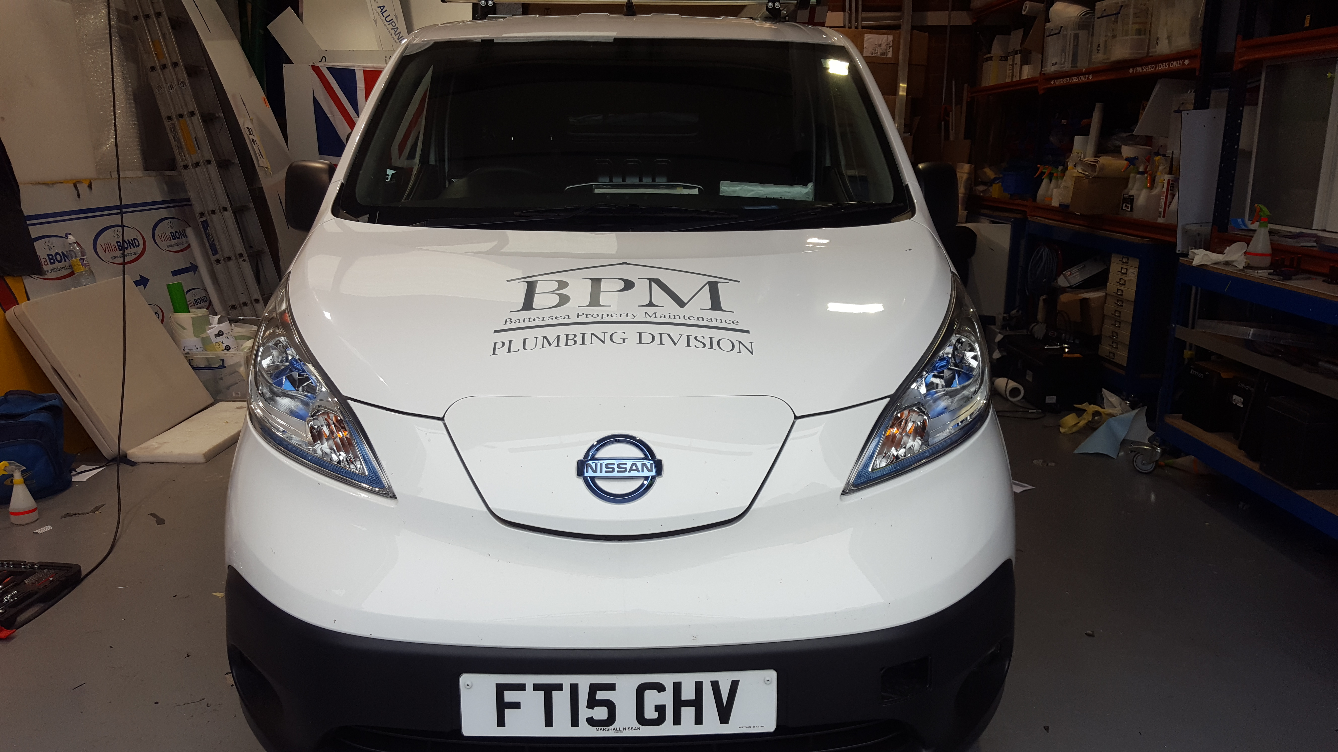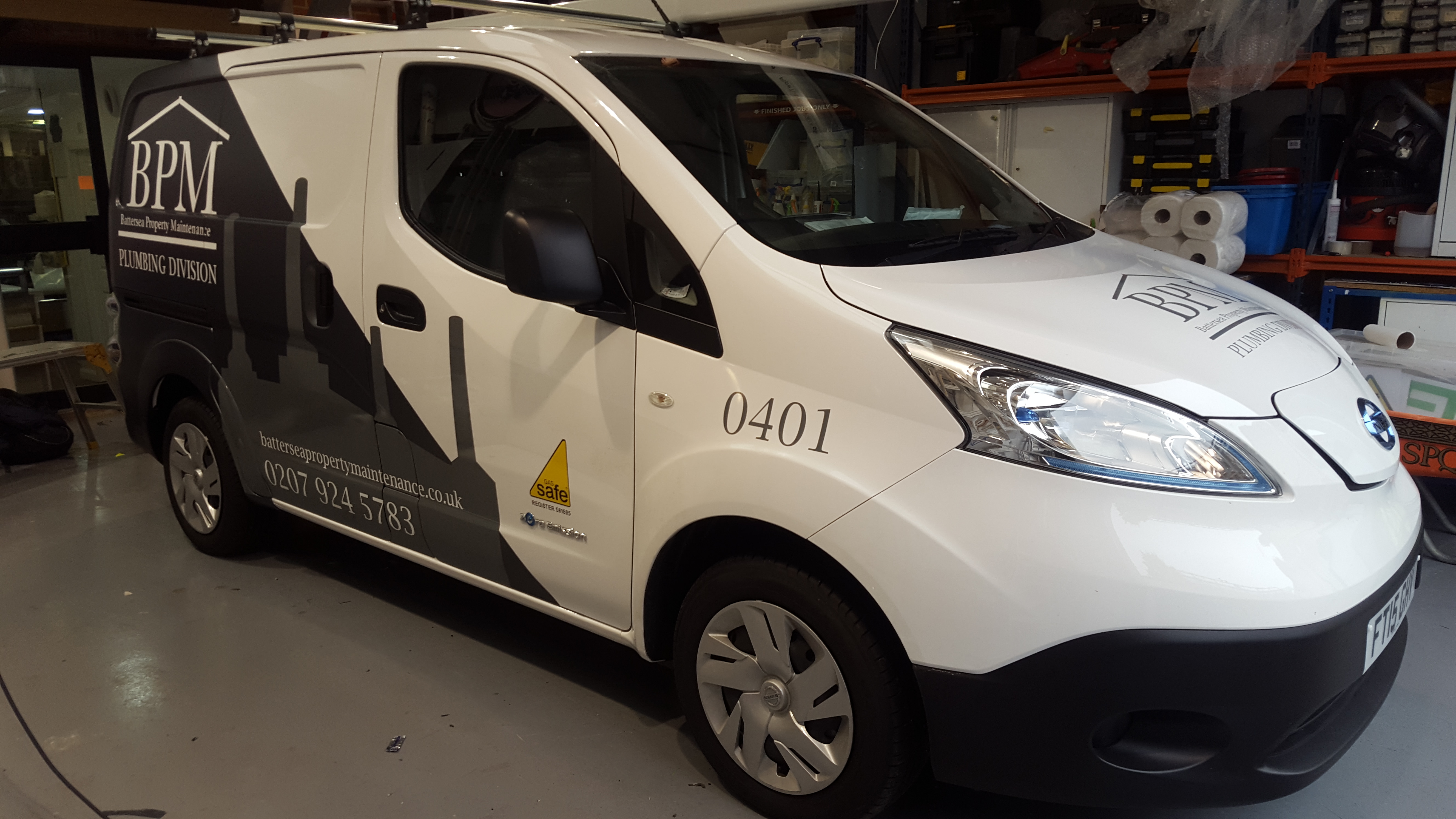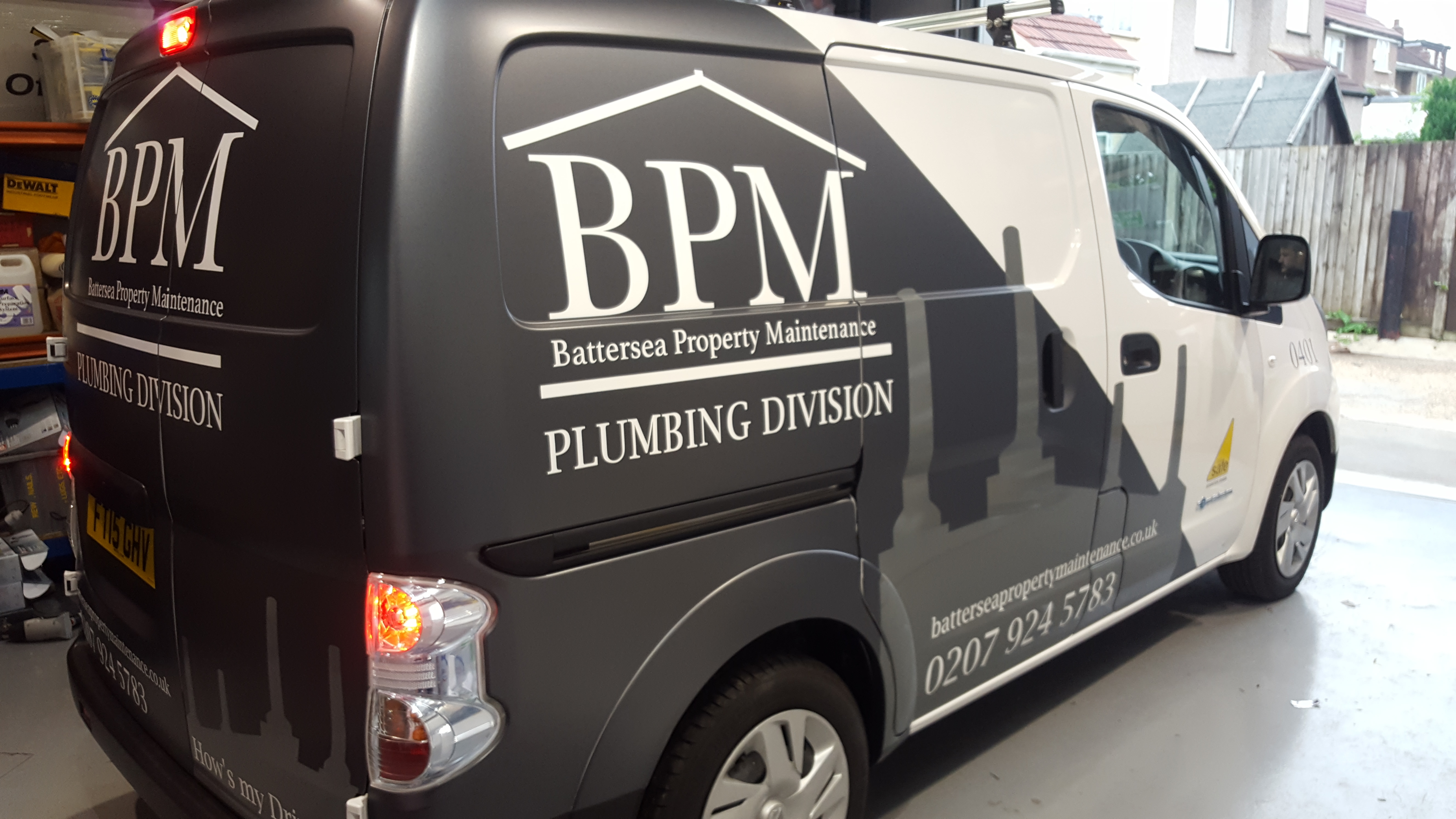 Half Vehicle Wrap With Matt Black Finish Half wrap small van with grey and matt black vinyl graphics complement the underlying white for a professional looking brand for this London plumber. Van SignsWrap Share this sign