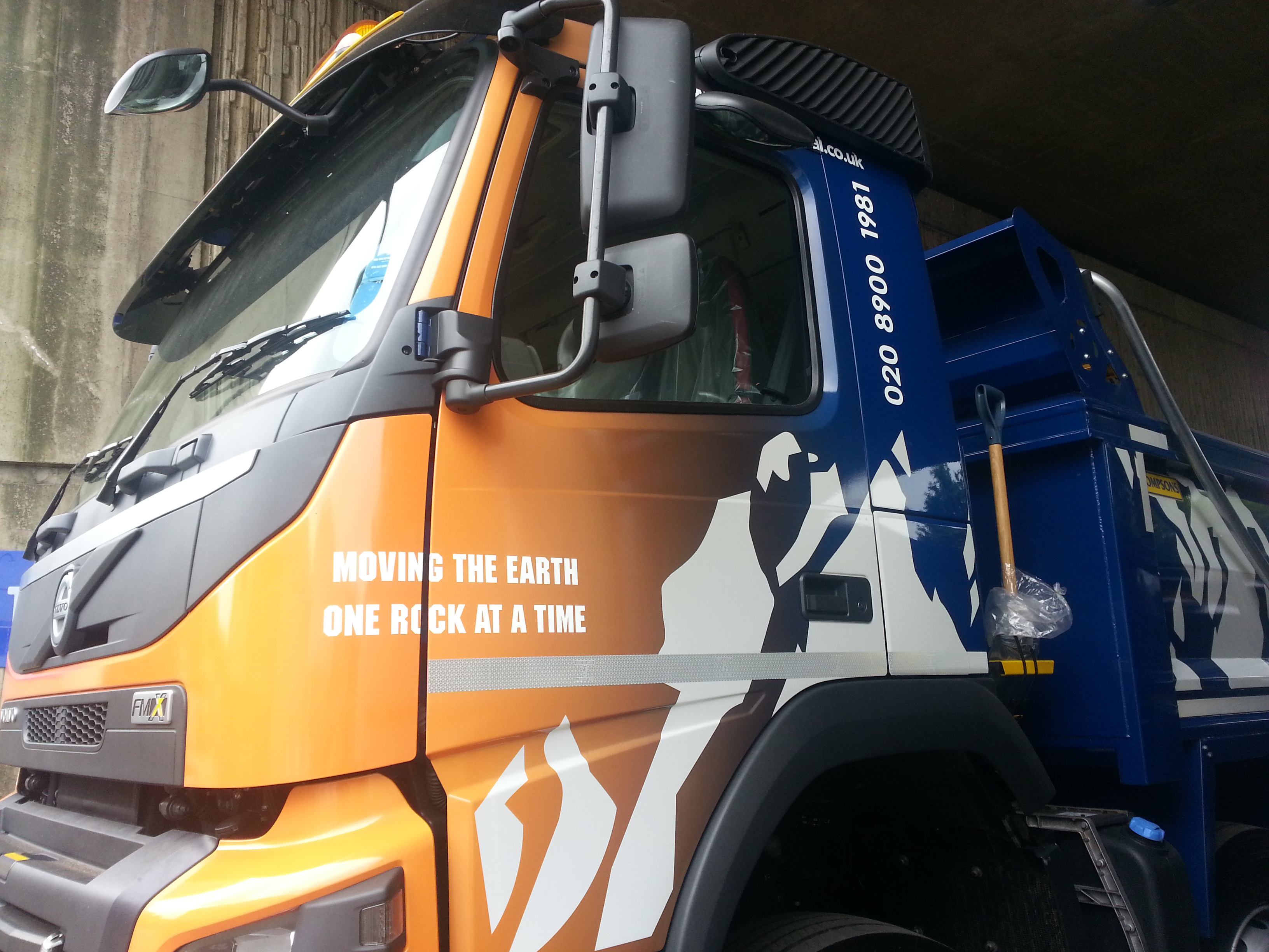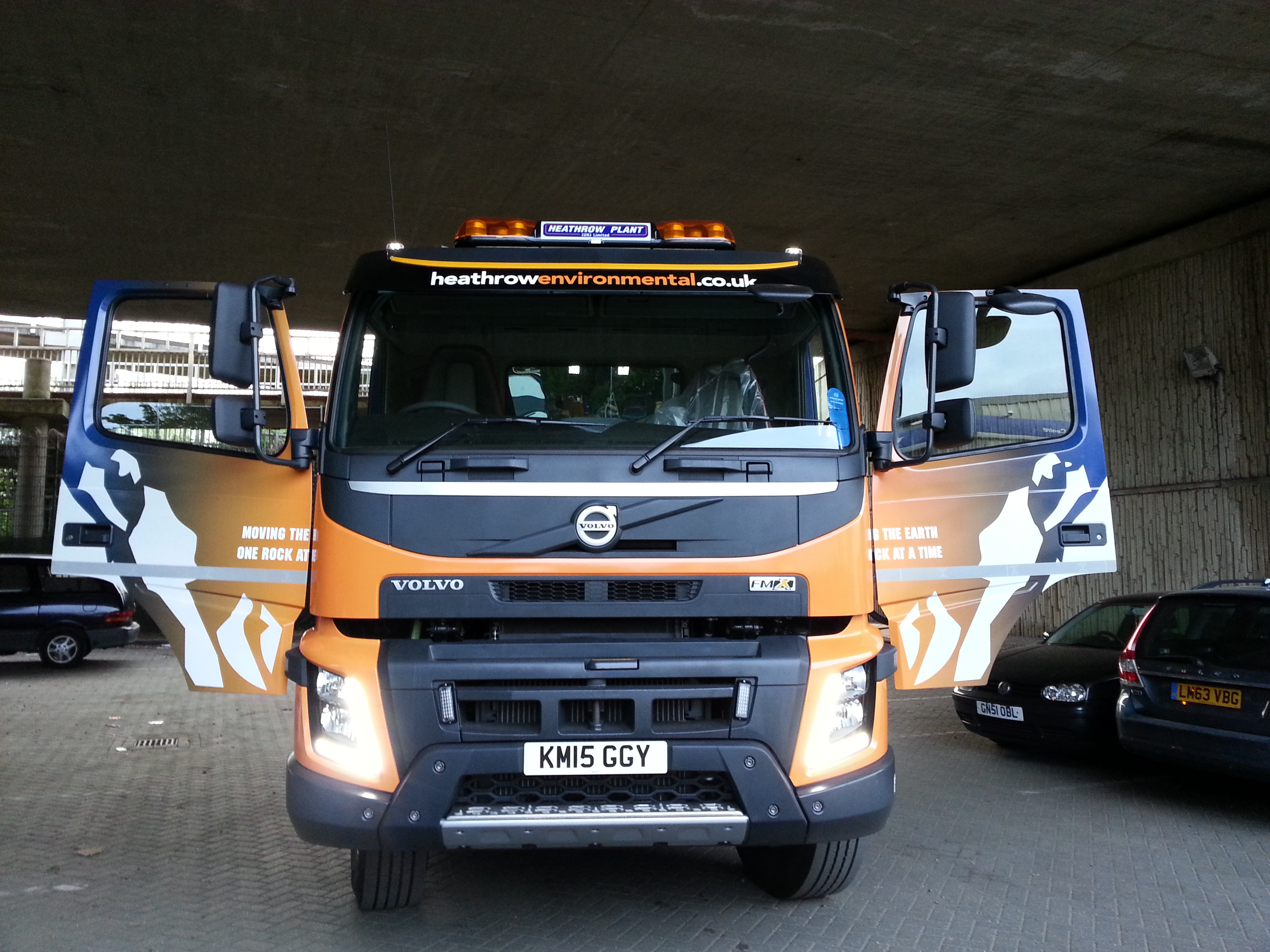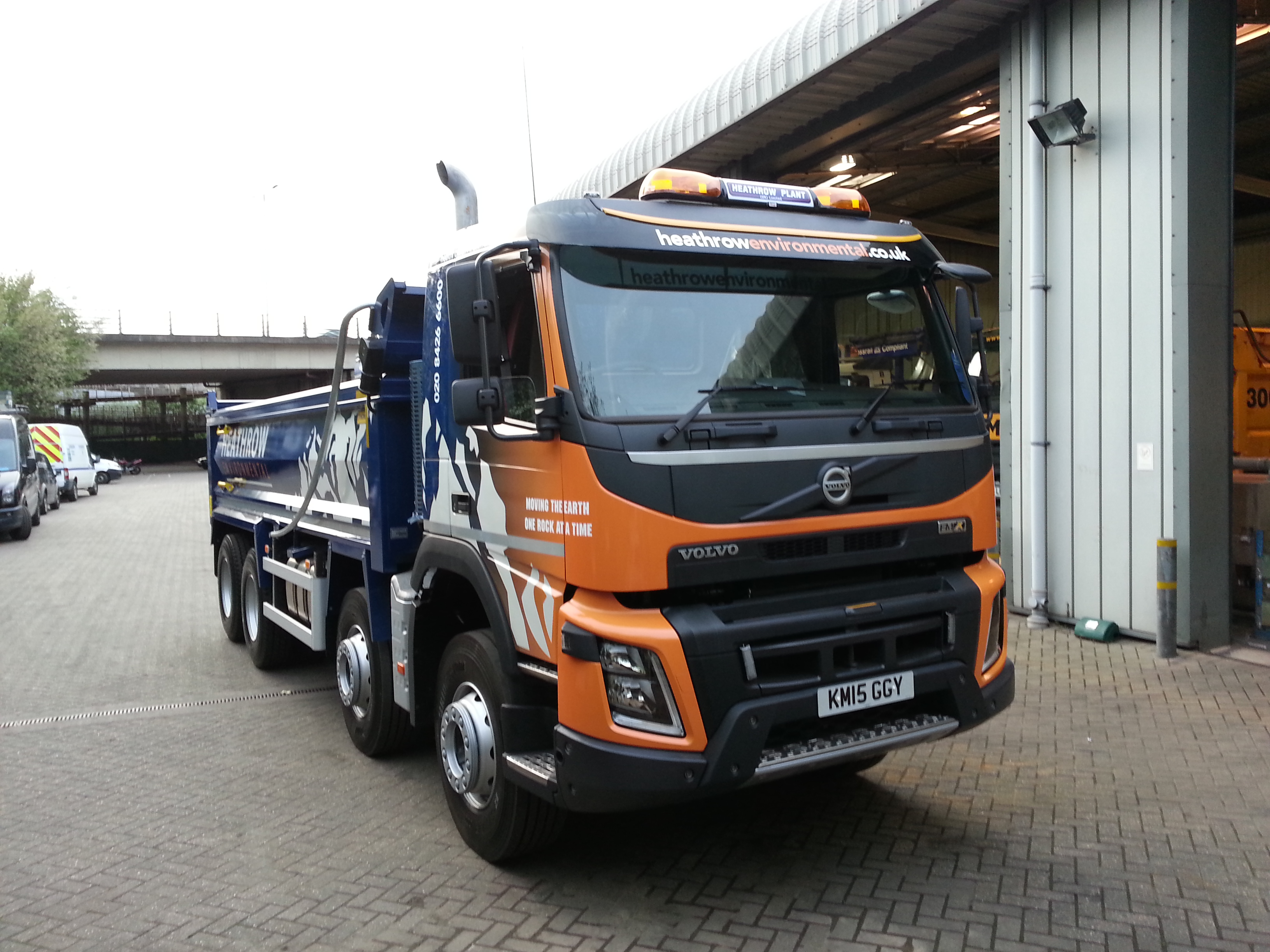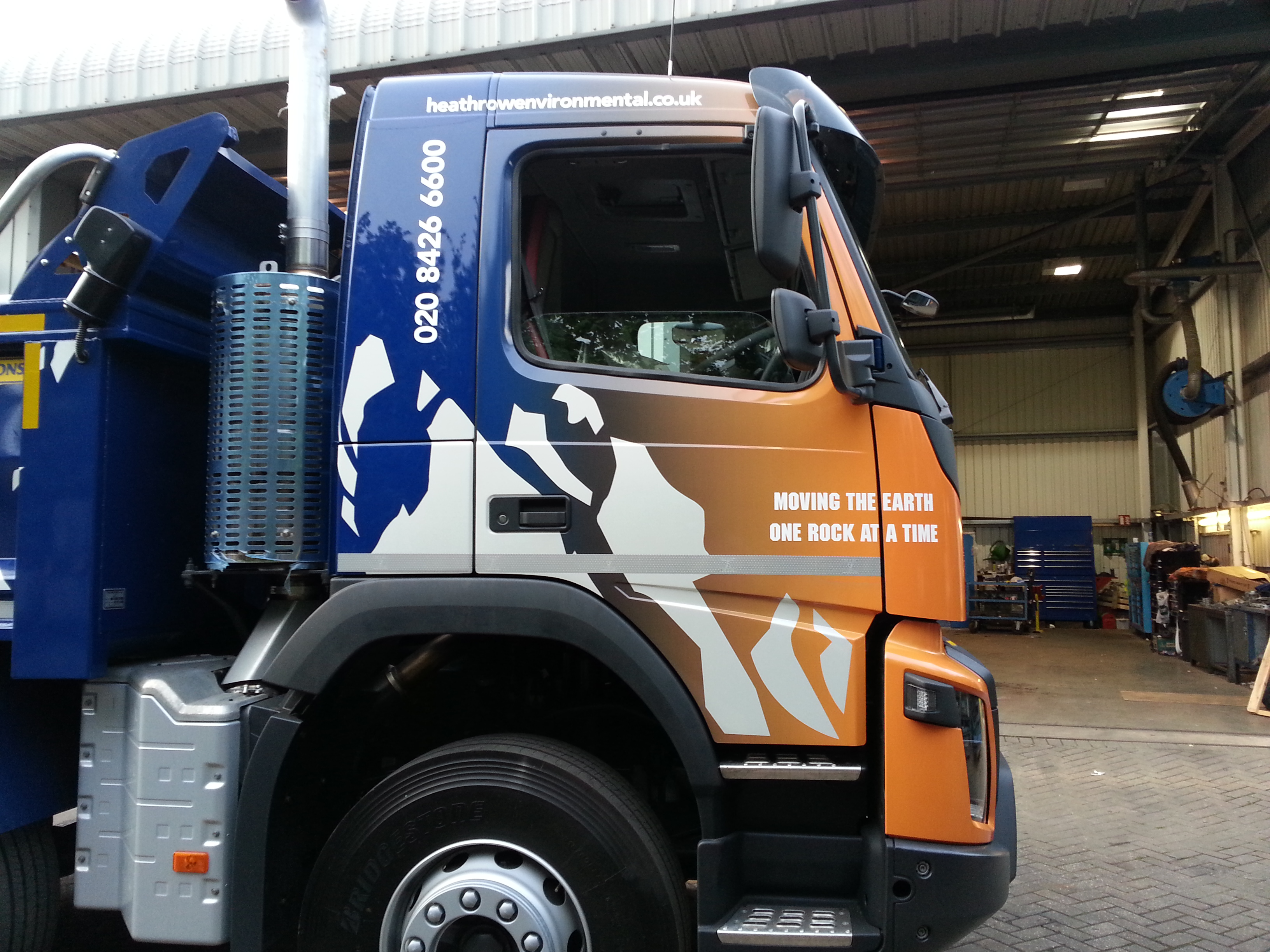 Heathrow Tipper Truck Vehicle Wrap HGV vehicle wrap tipper lorry with full cab sign coverage. Vinyl graphics to rear and reflective chevron back. Vehicle GraphicsPlant and HaulageWrapLorries and Commercial VehiclesChevron Share this sign