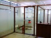A variety of internal office signs for a City of London Bank on glass partition office walls and glass doors including coloured flat vinyl graphics applied over frosted film to showcase corporate colours and brand.