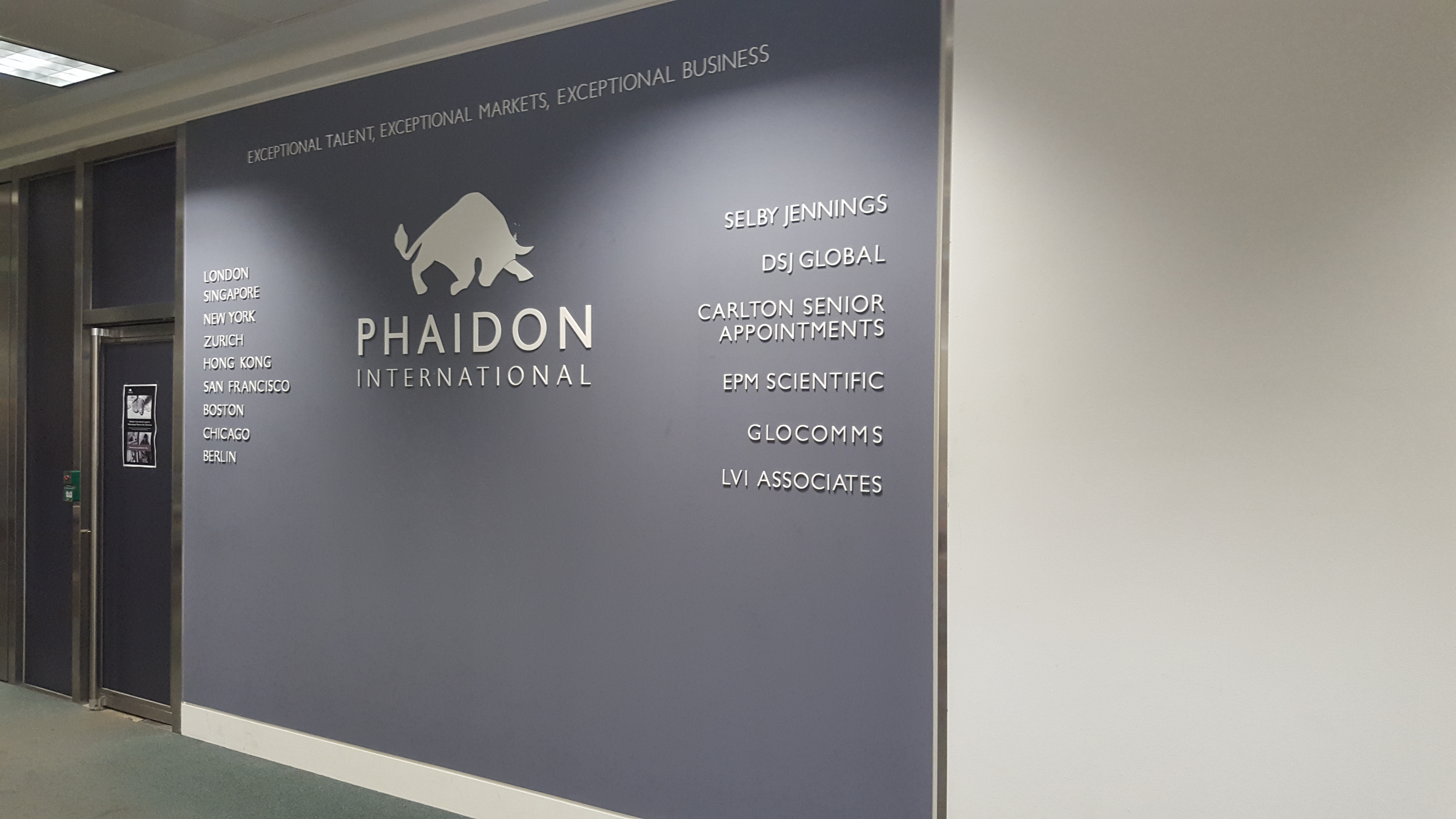Cut out acrylic 3d letters mounted onto colour coded internal office wall with company names and building directory information. If you have an exact colour requirement for your sign, we can run an exact Pantone colour match against your brand requirements.