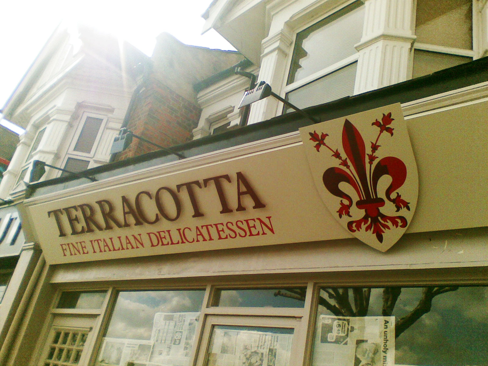 Italian Restaurant Sign Angled Italian restaurant shopfront sign with acrylic letters, illuminated with halogen spotlights running along top edge. Shield logo is superimposed separately on its own board. Restaurant and BarShop SignsAcrylic Letters and Logos Share this sign