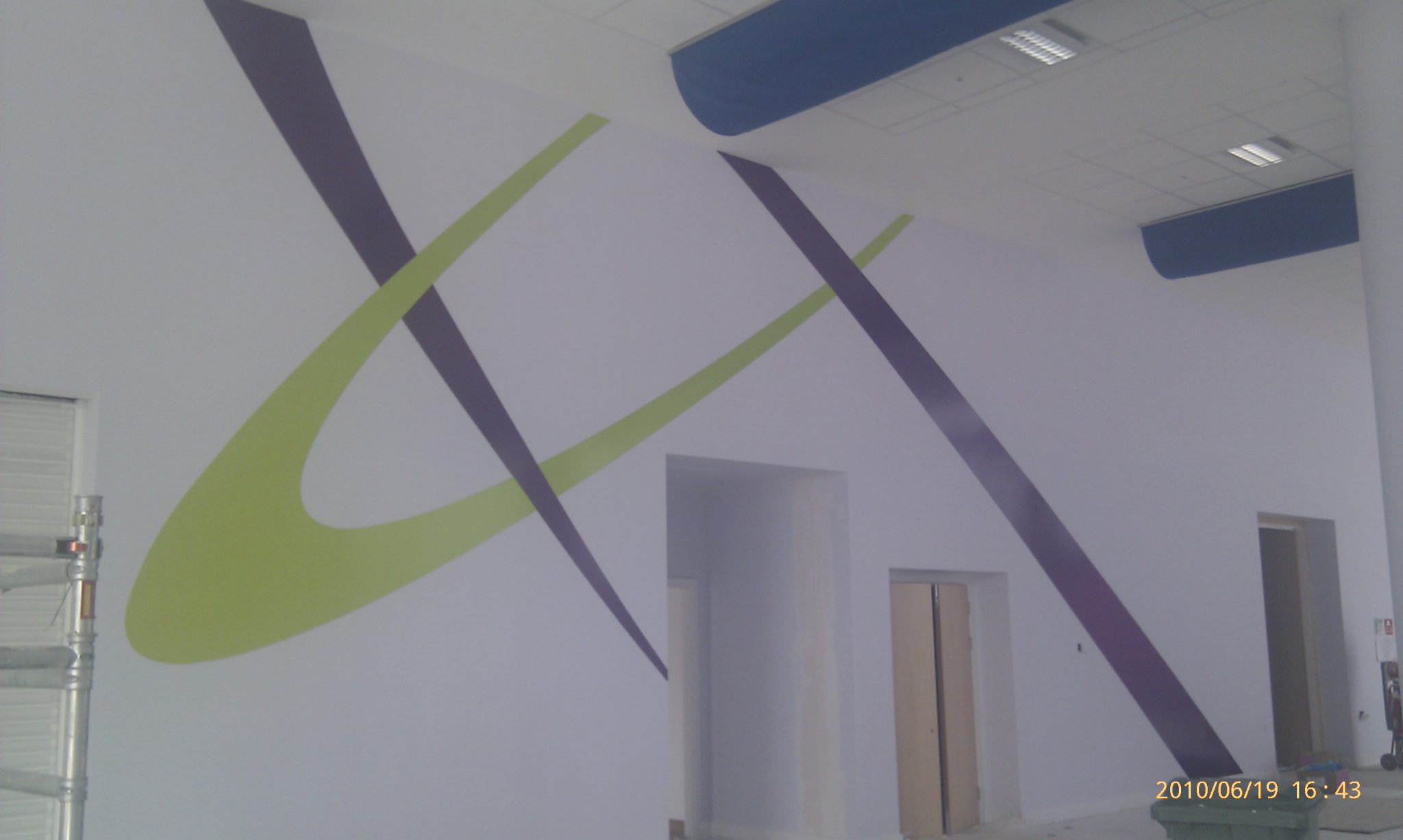 Large Format Abstract Office Wallpaper Large format abstract office wallpaper. Vinyl graphics installed with cherry picker. Murals and wallpaperOffice Signs Share this sign