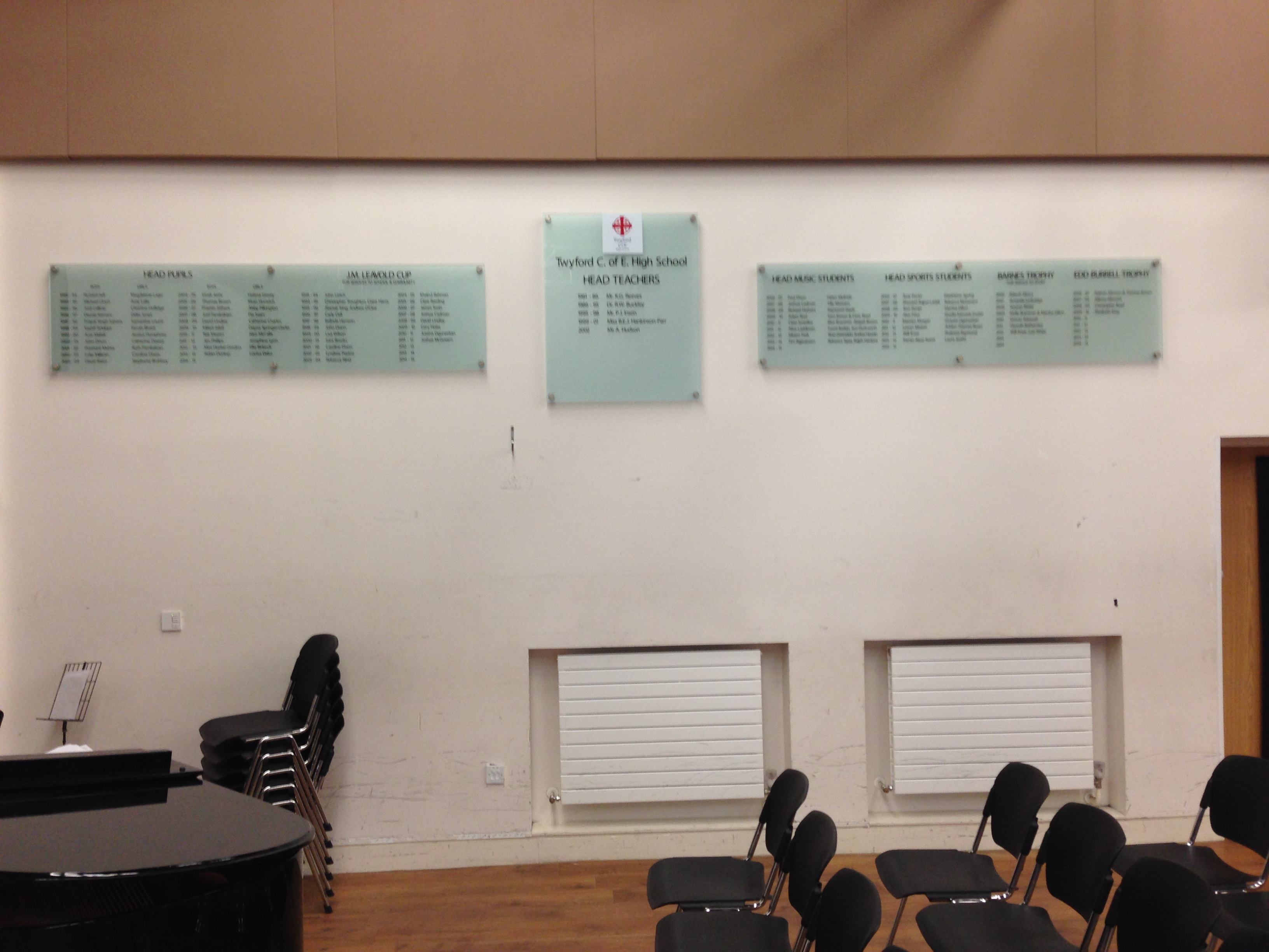 A twist on the traditional wooden honours boards these acrylic glass look panels offer a modern contemporary look. Vinyl letters allow for easy, regular updates and the panels are easily re-located and archived when full.