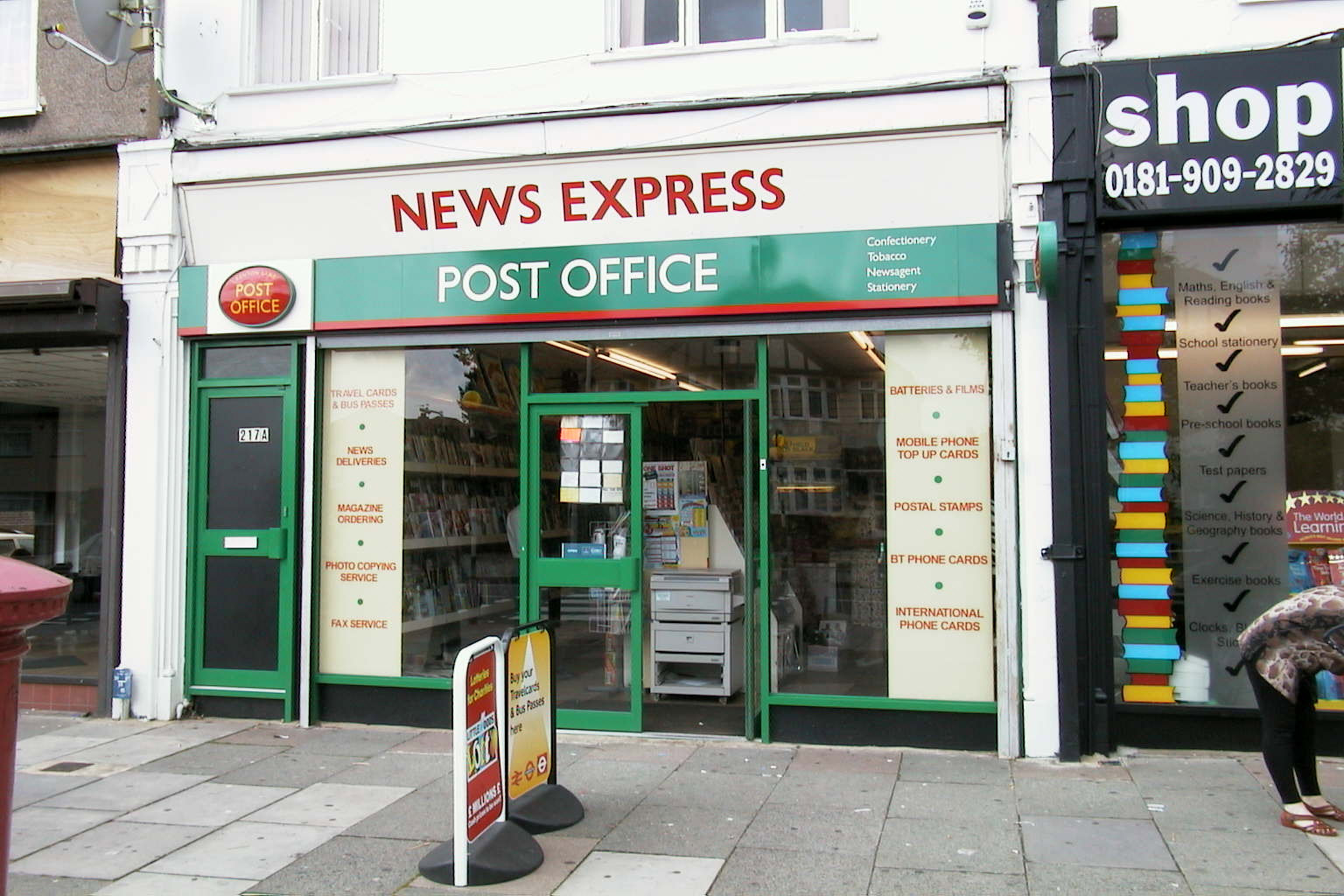 Post Office Sign London post office shop fascia with aluminium tray and cut out metal letters setting out name of the adjoining newsagent. Shop Signs Share this sign