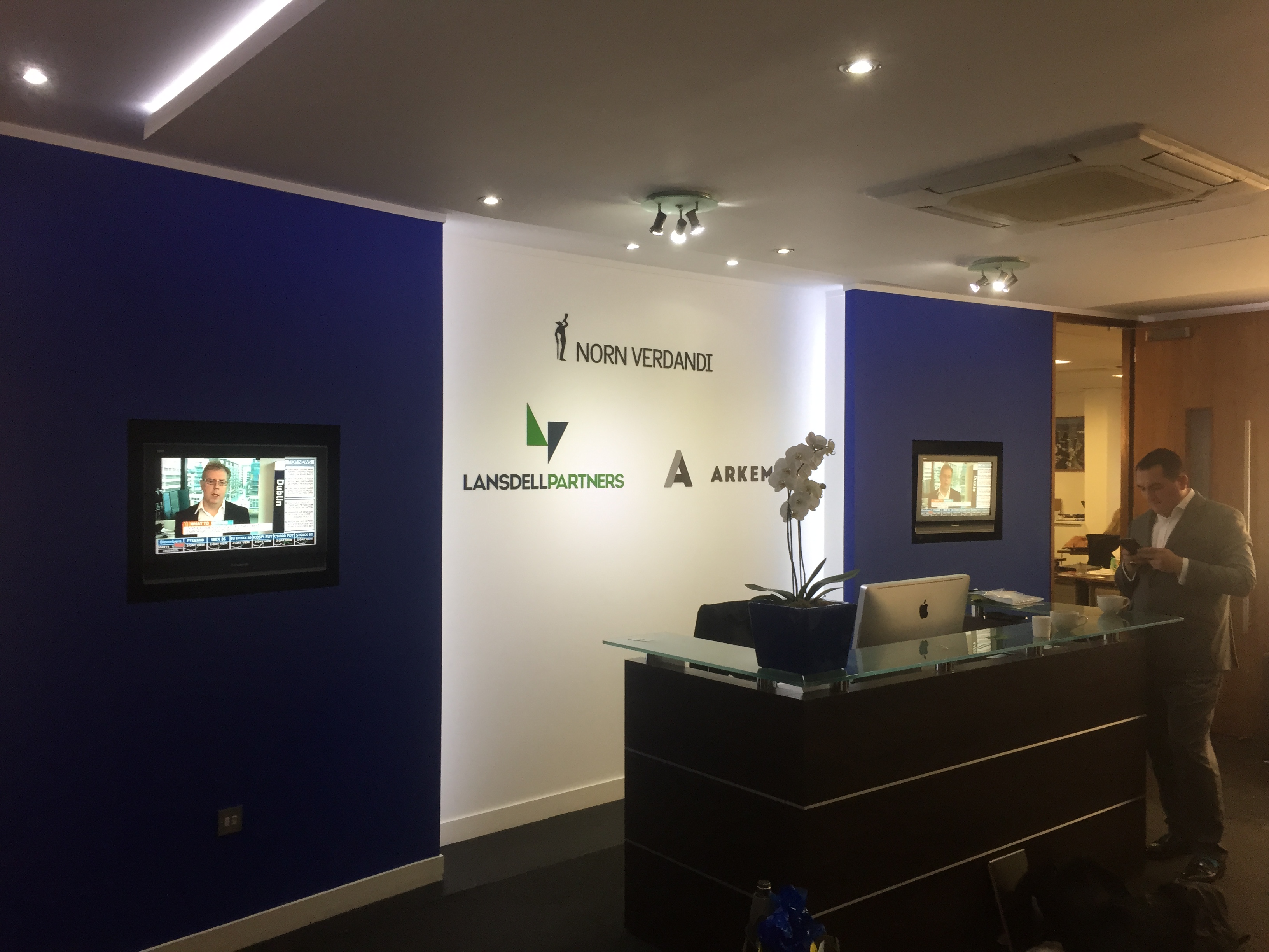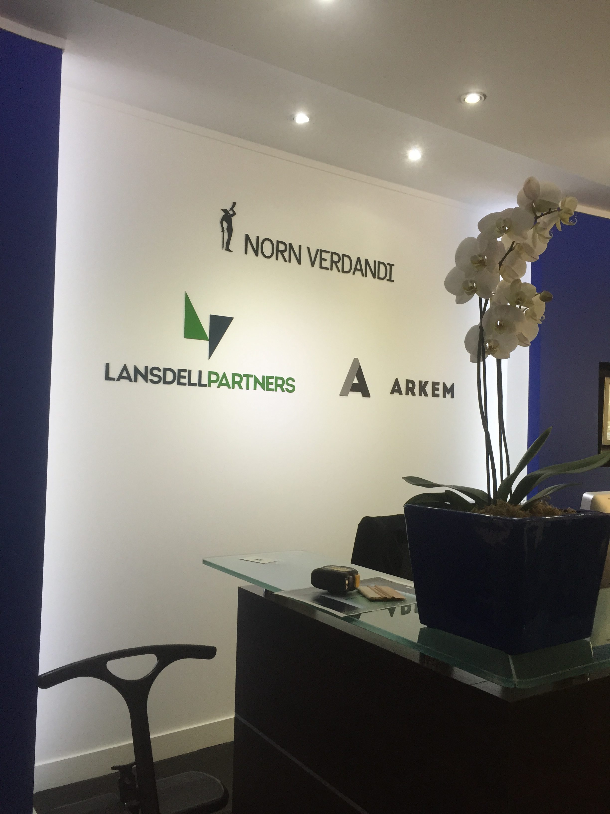 Raised Reception Letters Raised reception letters depicting corporate group logos bonded directly to reception wall. Corporate SignsReception signsOffice Signs Share this sign