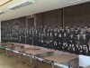 Large school photo panoramic view of old fashioned year group photo in sepia applied to wall in digitally printed vinyl graphics to create a sense of heritage and local history.