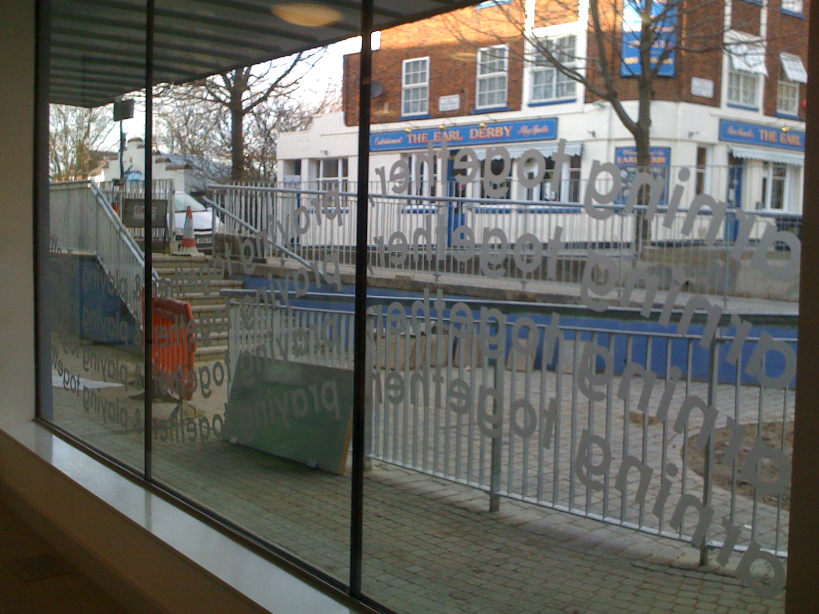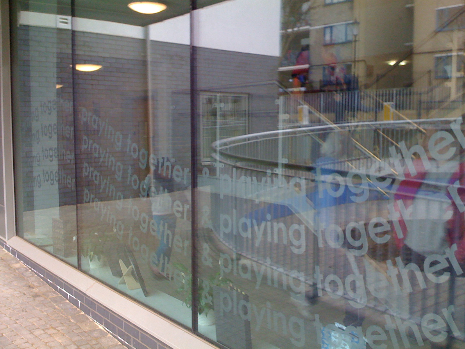 Decorative pattern on street-facing window for Church of England school highlighting the school's values. Individual cut letters and other patterns can be installed very efficiently inside one business day because they are prepared and positioned beforehand off-site.
