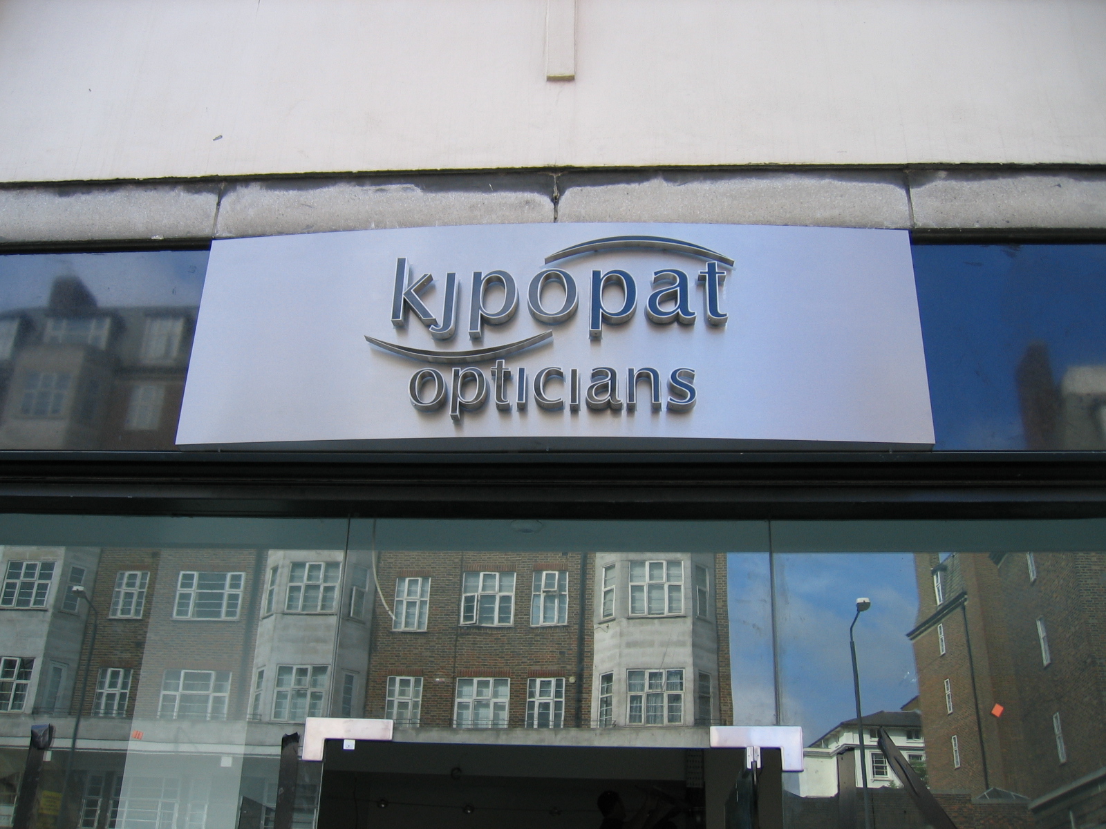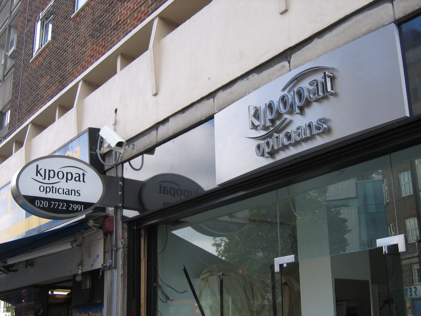 Serif Letter Shop Sign 3D serif-typeface metal letters mounted on solid colour aluminium surround for shop in London. Shop Signs Share this sign