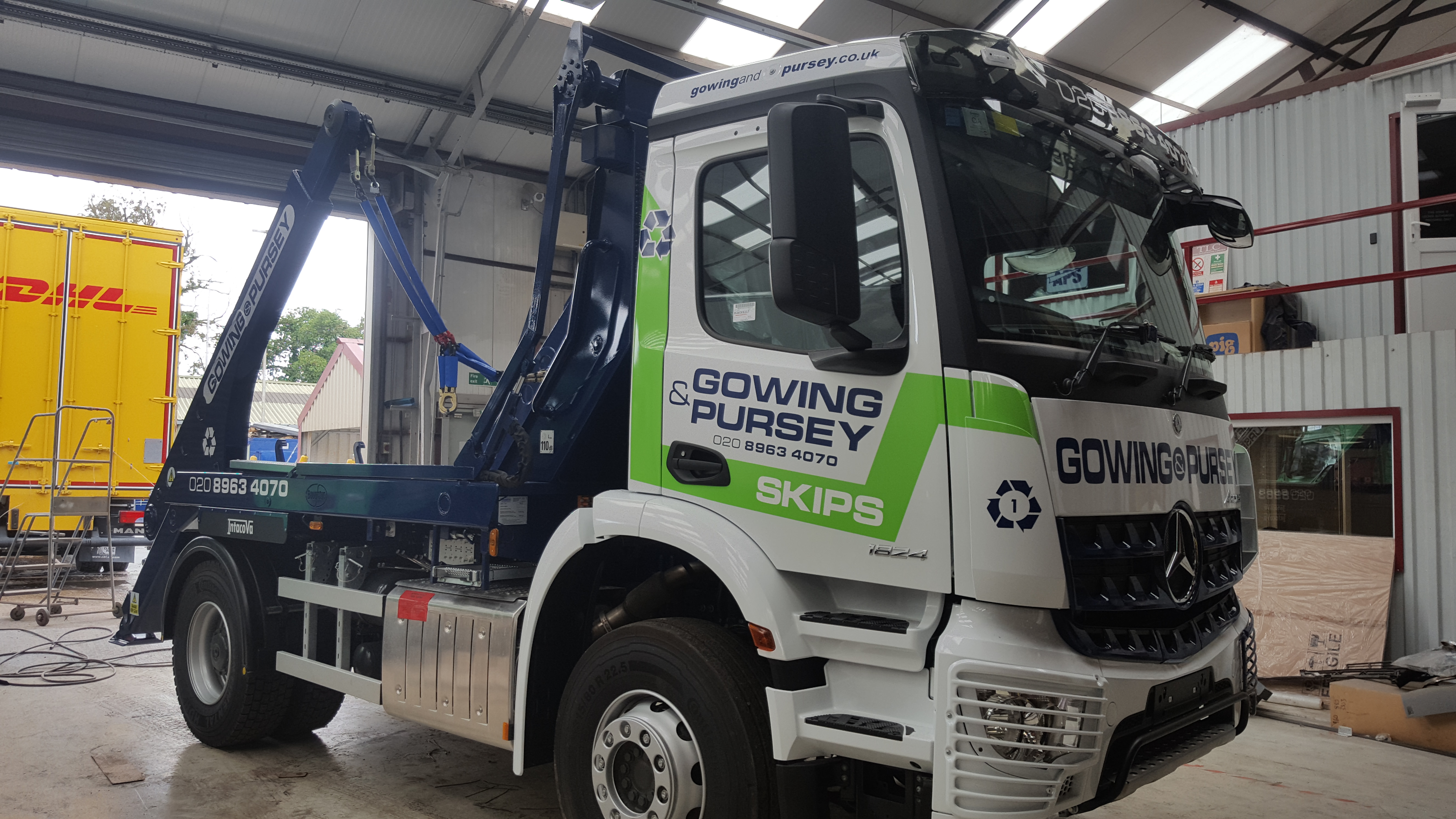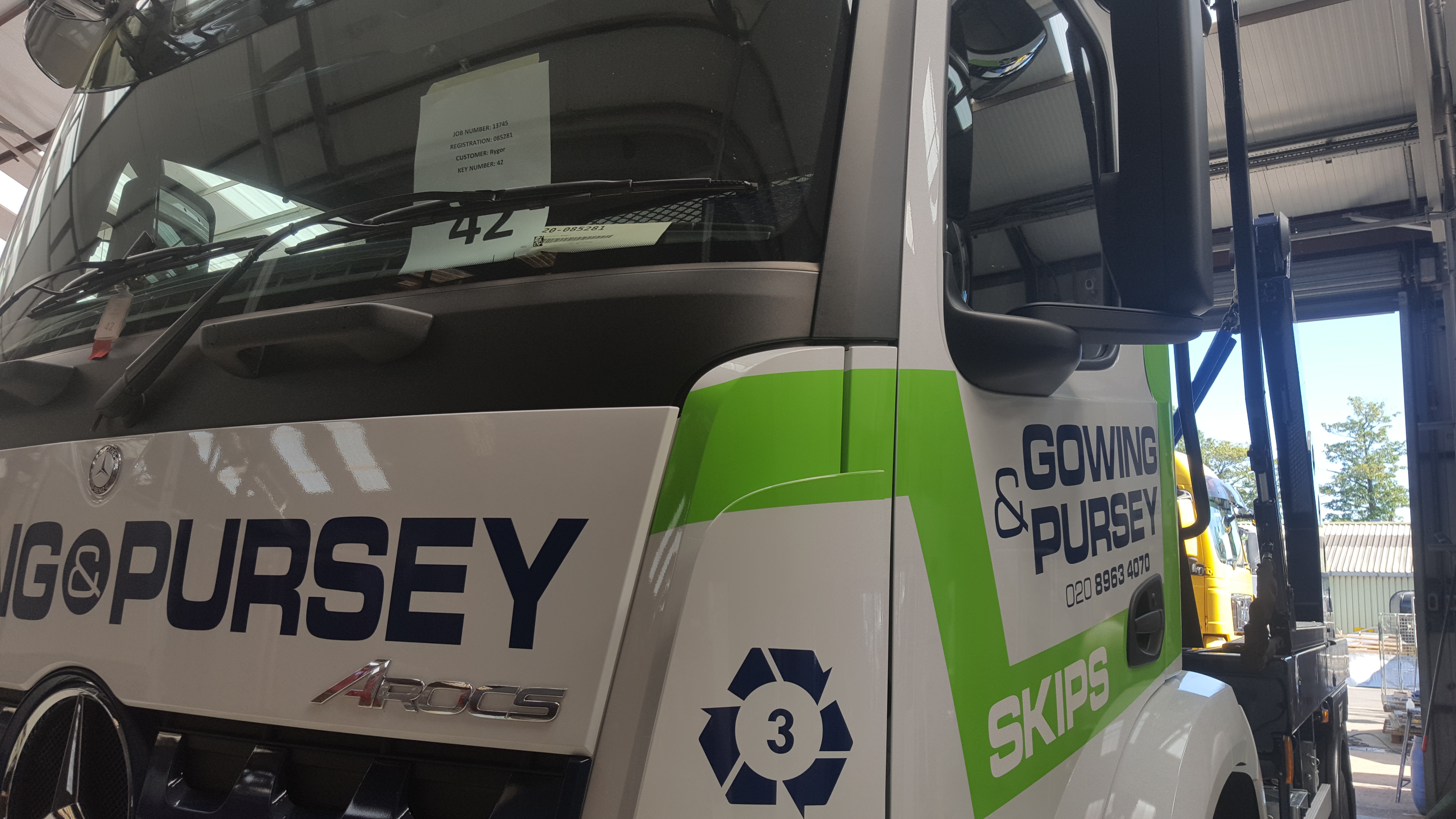 Skip Lorry Sign Signs for skip lorry, vinyl graphics in various colours. We offer signage for all types of plant and haulage vehicles and can install signs on single vehicles or large fleets of vehicles. Construction SignsPlant and Haulage Share this sign