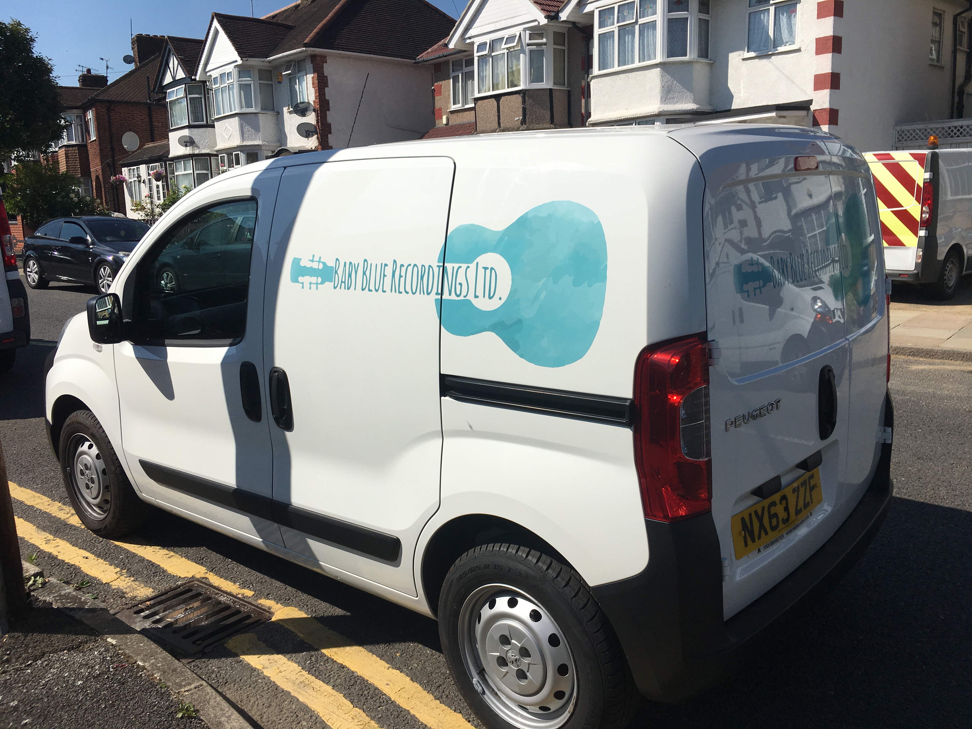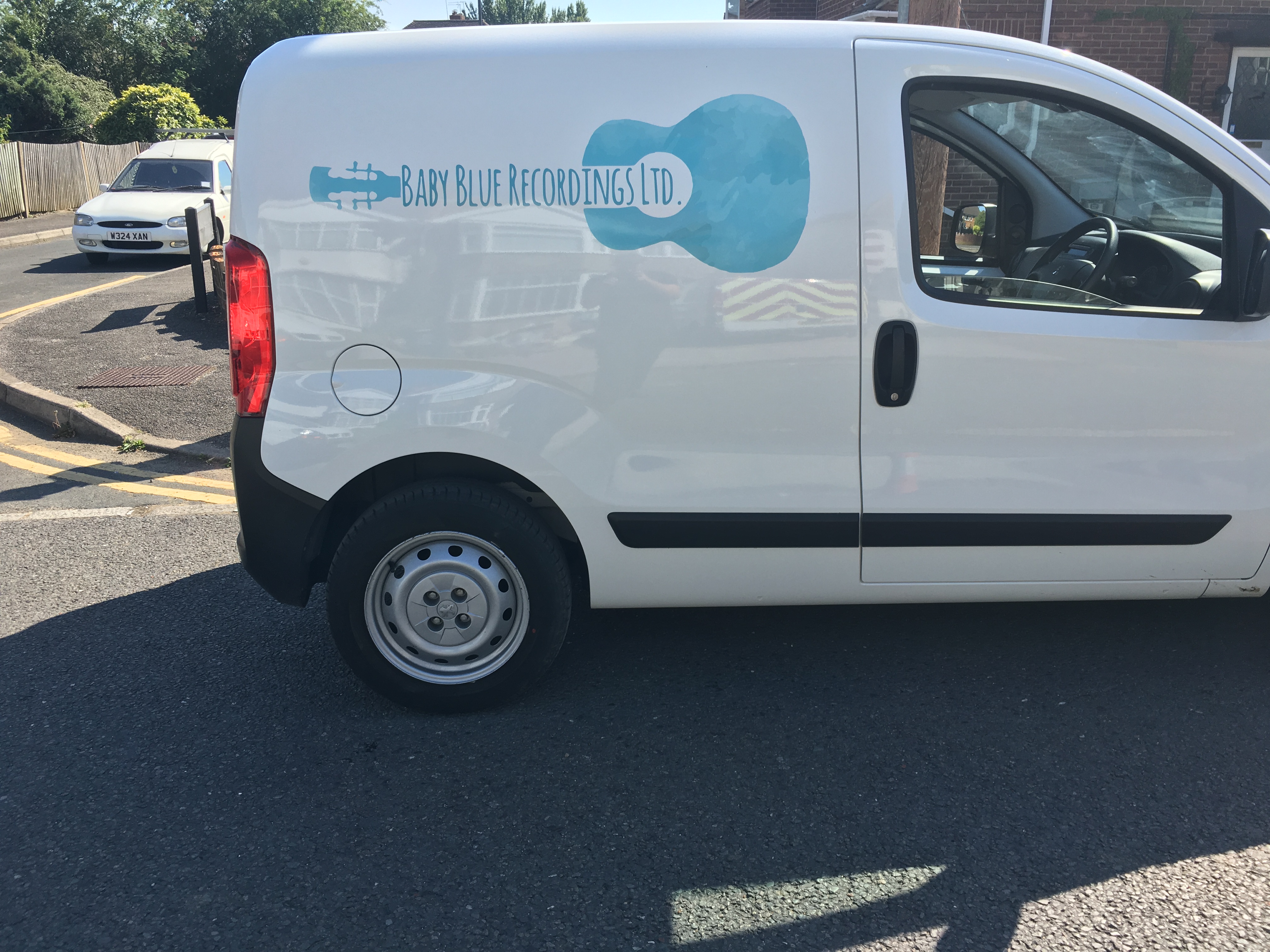 Small Van Sign For Music Producer Fully digitally printed small van sign, applied directly to side and rear panels. Digital printing allows gradients and shading to be achieved on van signs. Van Signs Share this sign