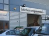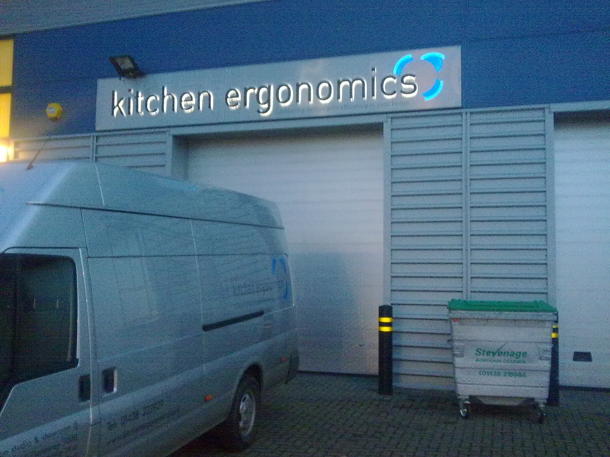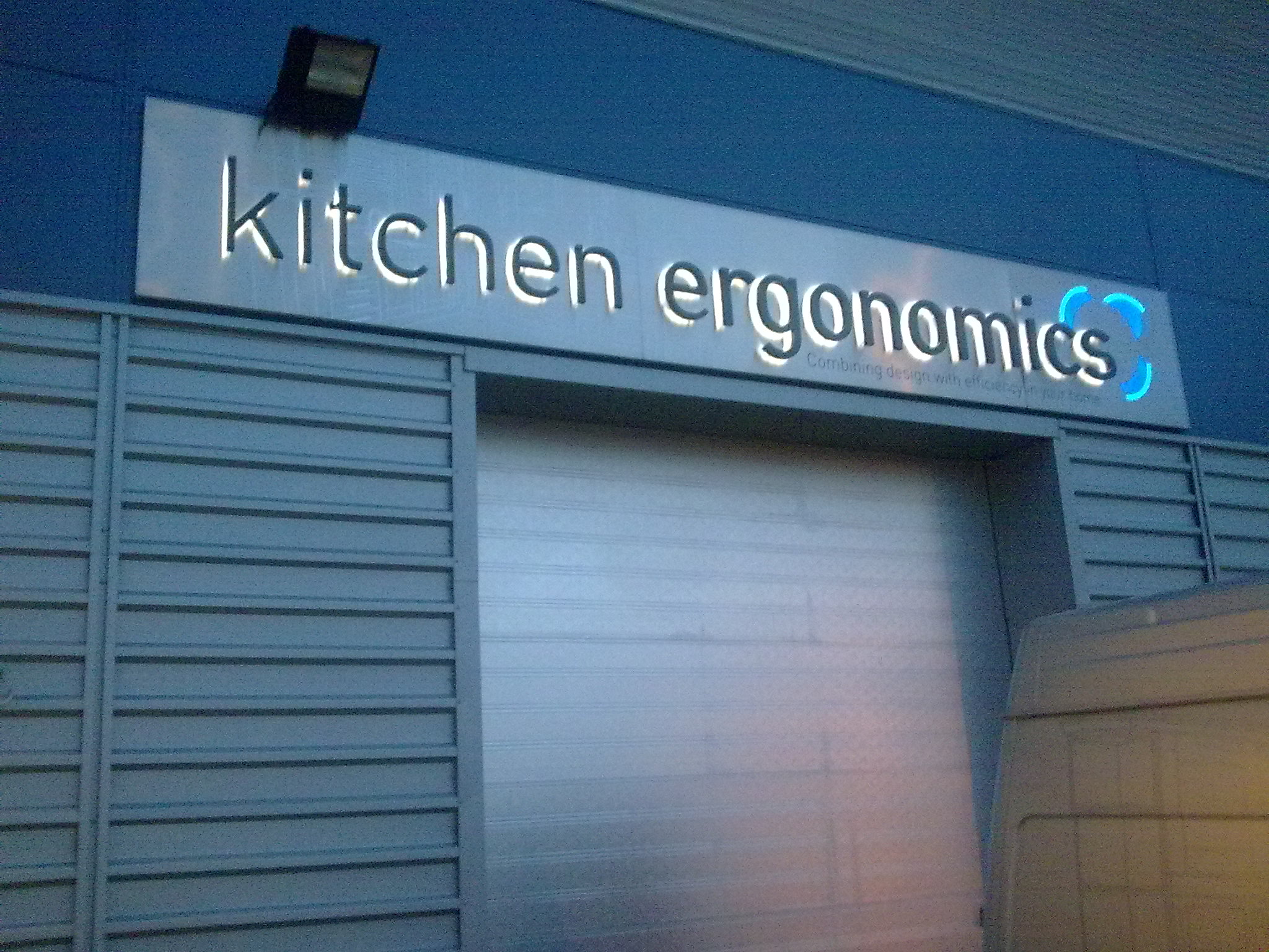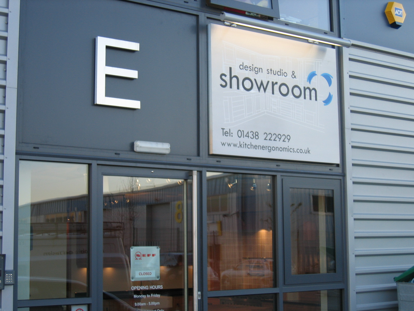 Square metal panel sign and large metal sign for retail park storage unit and larger sign with company logo. Each sign includes additional watermarked detail of a white wireframe image underneath the text.