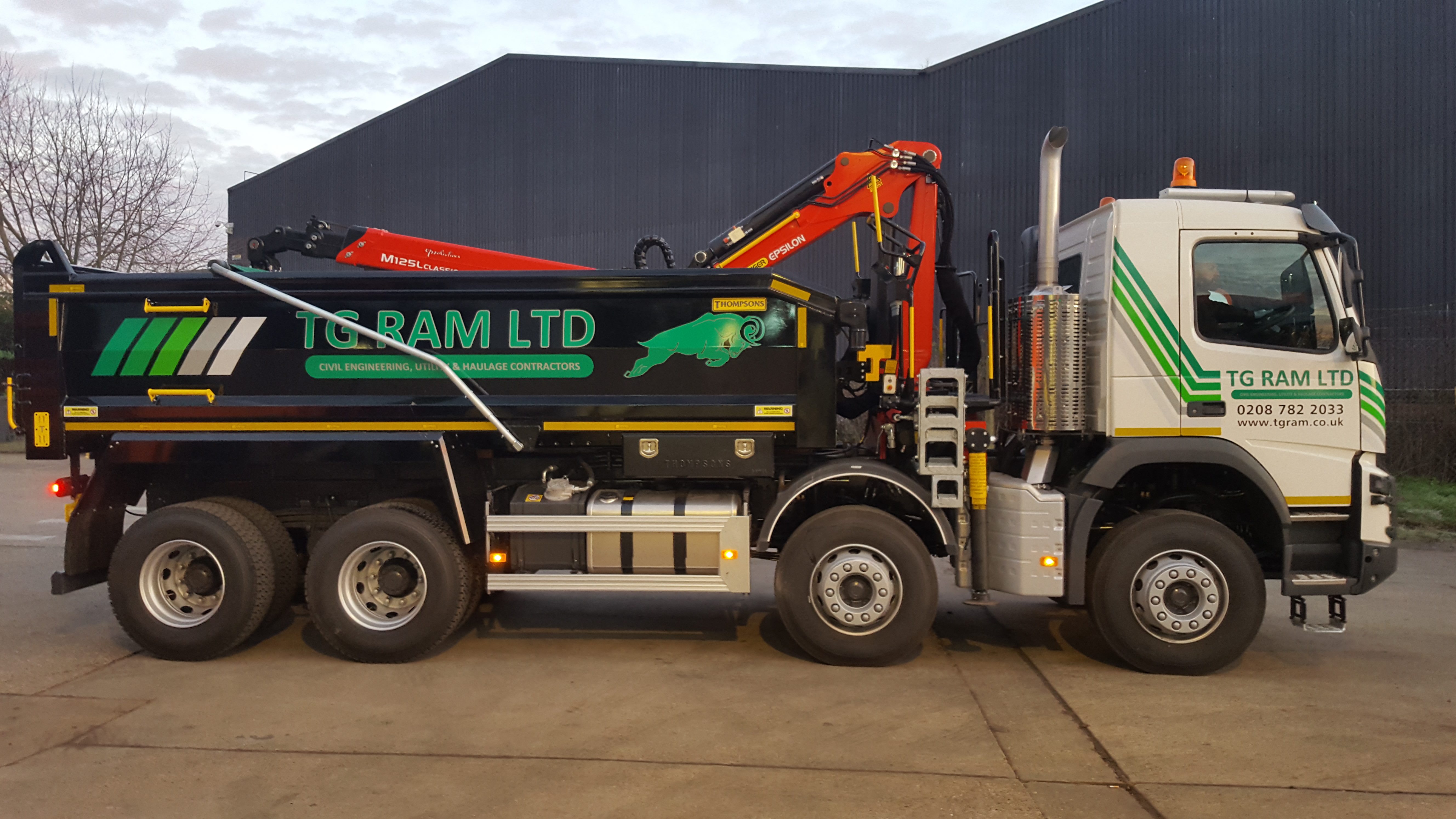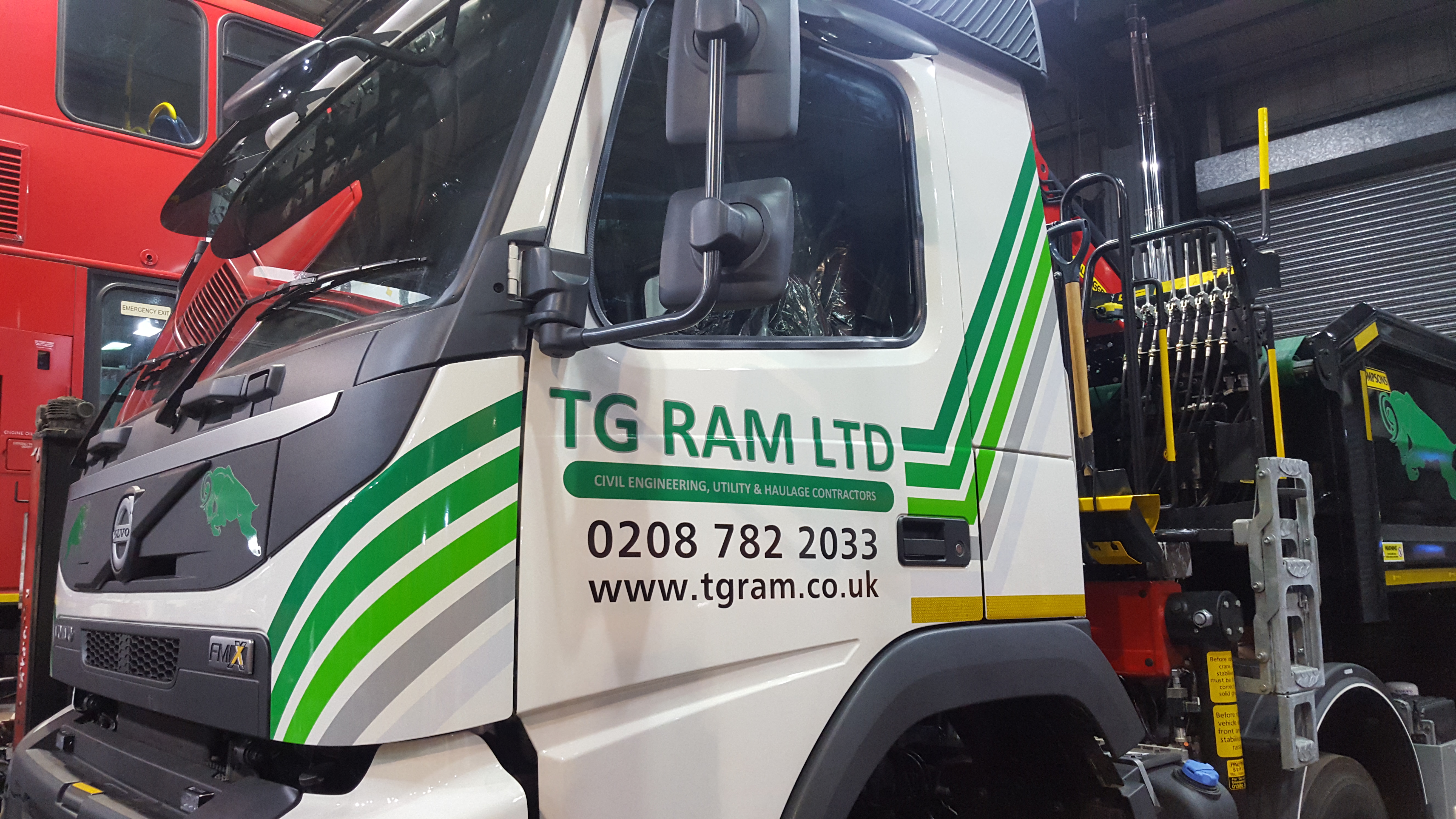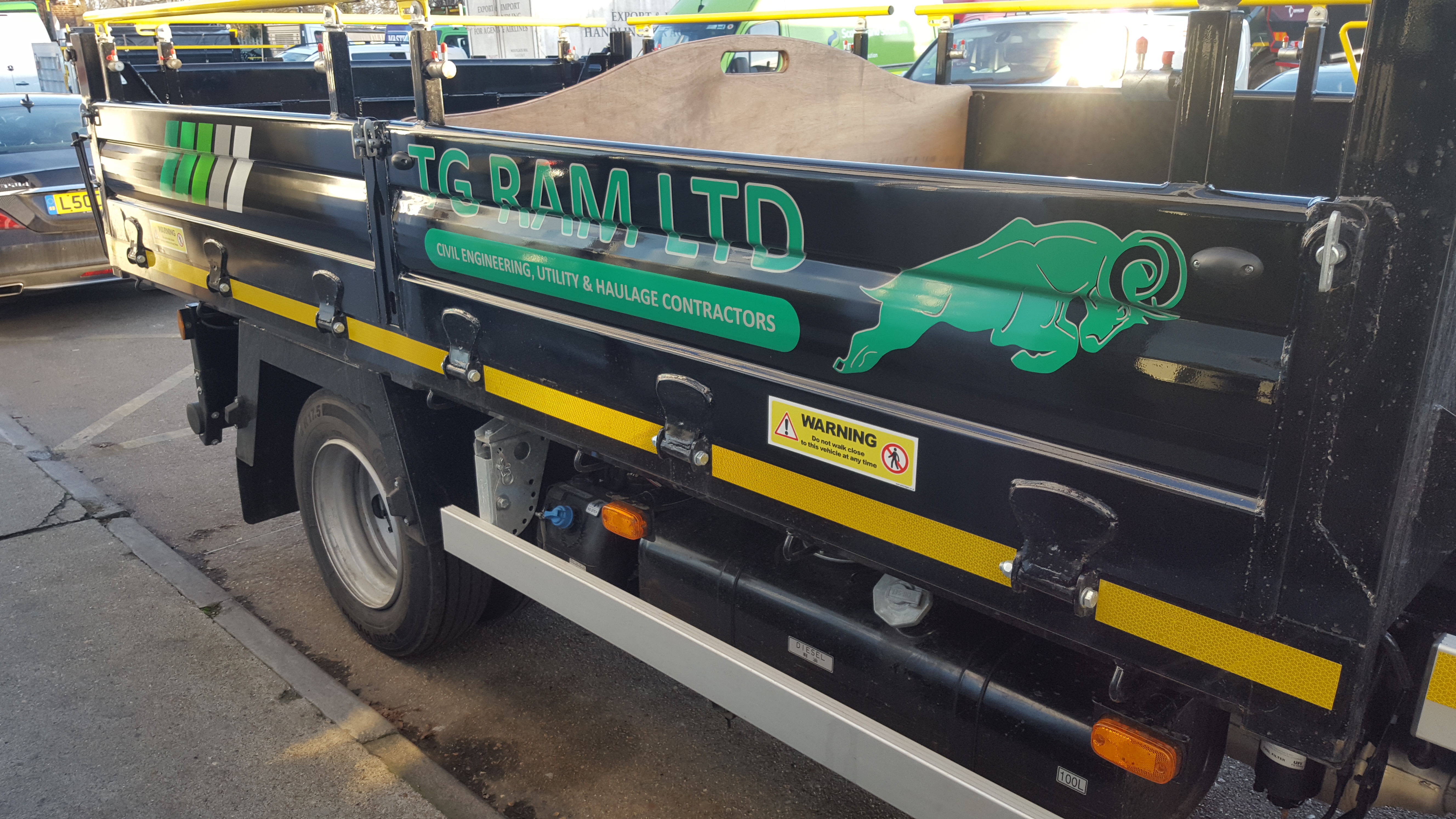 Haulage Contractors Vehicle graphics applied to ridged surface area of side of tipper truck and digger for civil engineering and haulage contractors. Construction SignsVehicle GraphicsPlant and HaulageLorries and Commercial Vehicles Share this sign