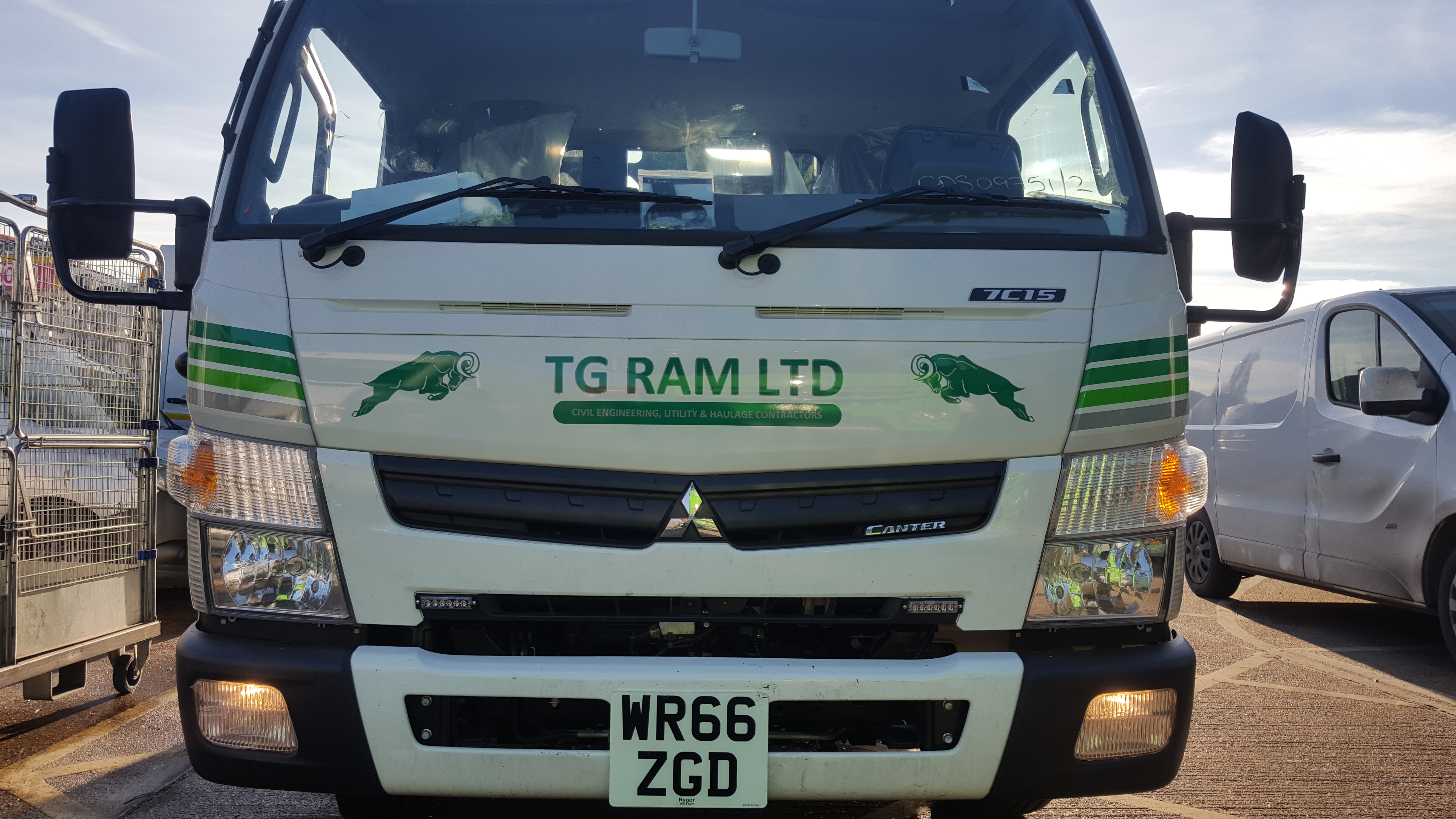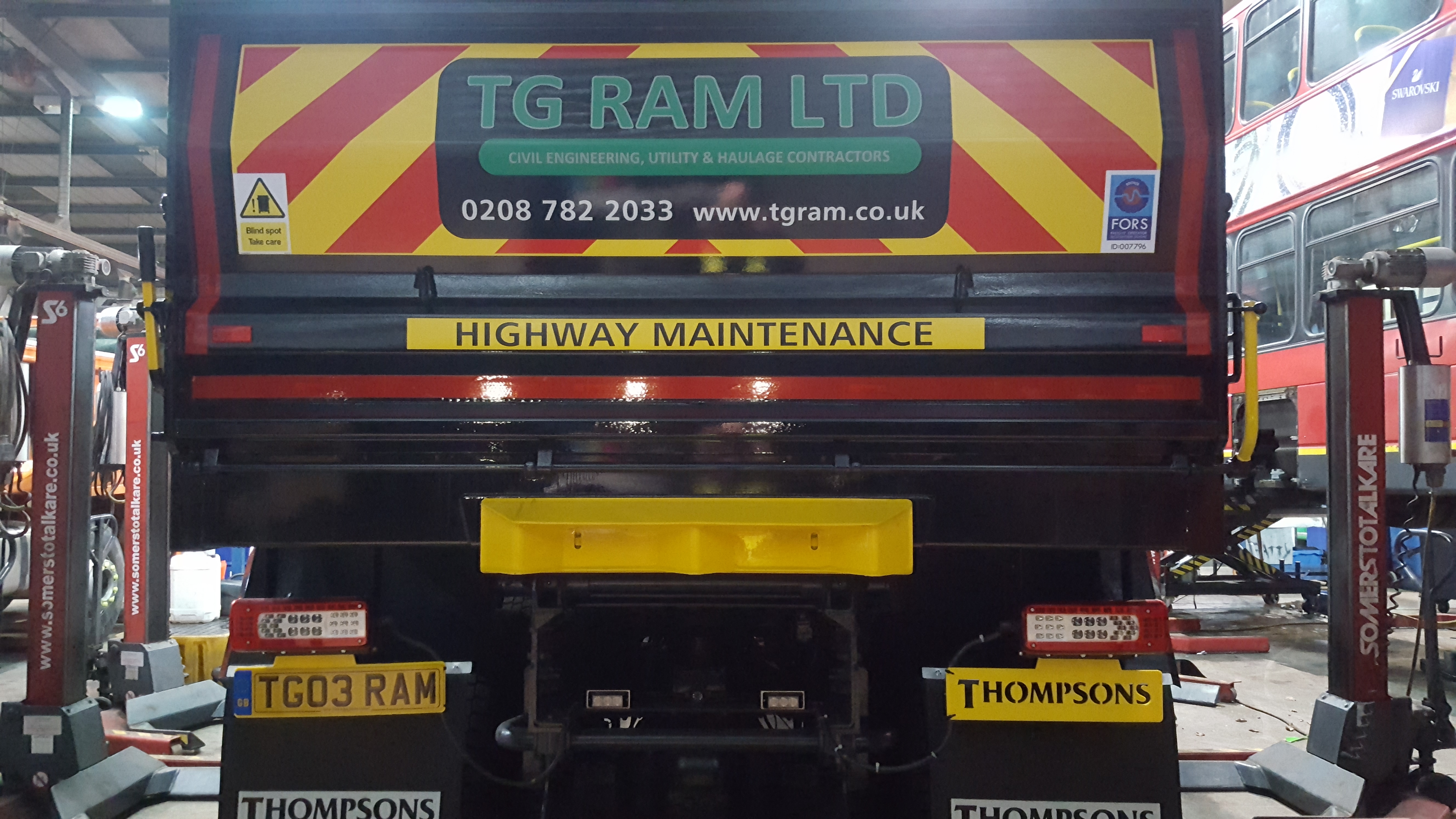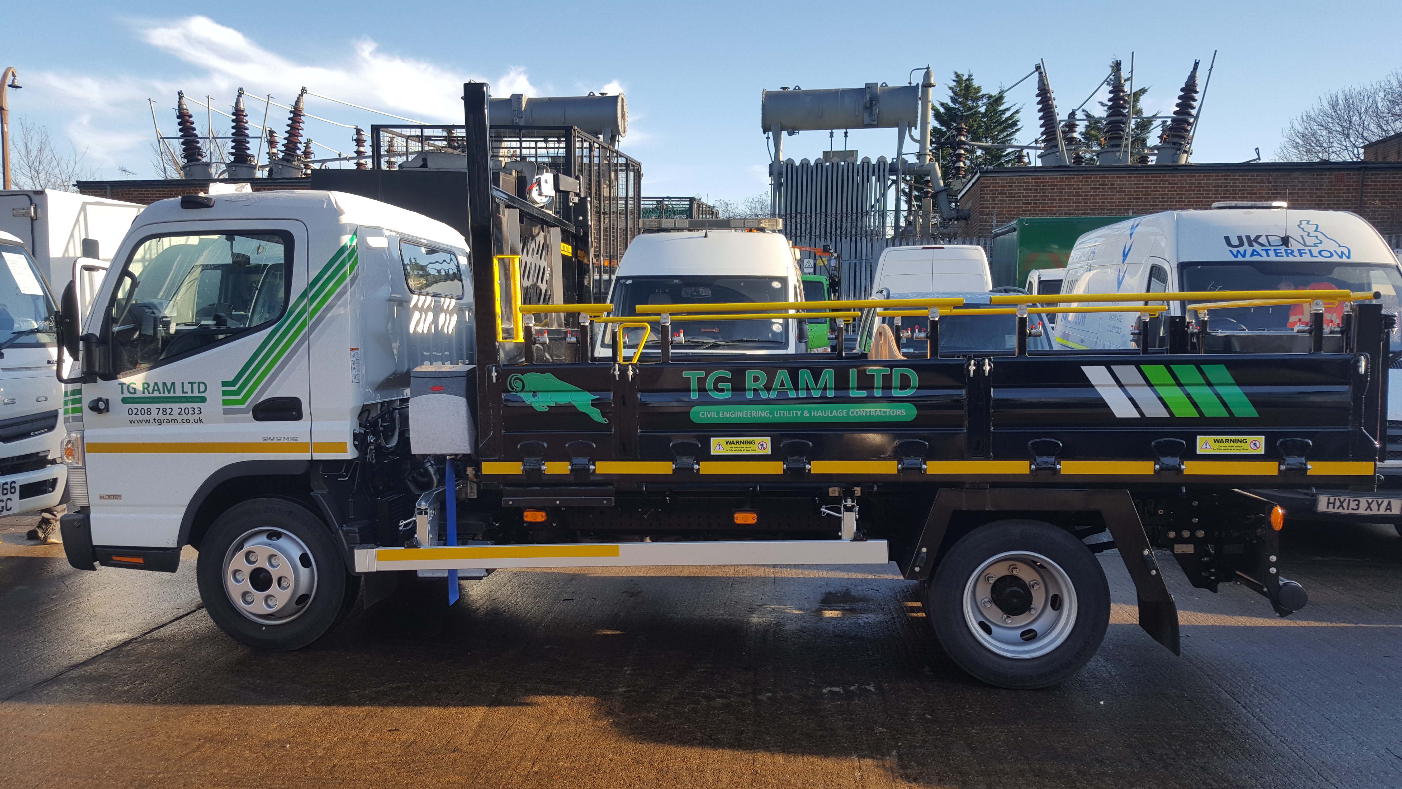 Haulage Contractors Vehicle graphics applied to ridged surface area of side of tipper truck and digger for civil engineering and haulage contractors. Construction SignsVehicle GraphicsPlant and HaulageLorries and Commercial Vehicles Share this sign
