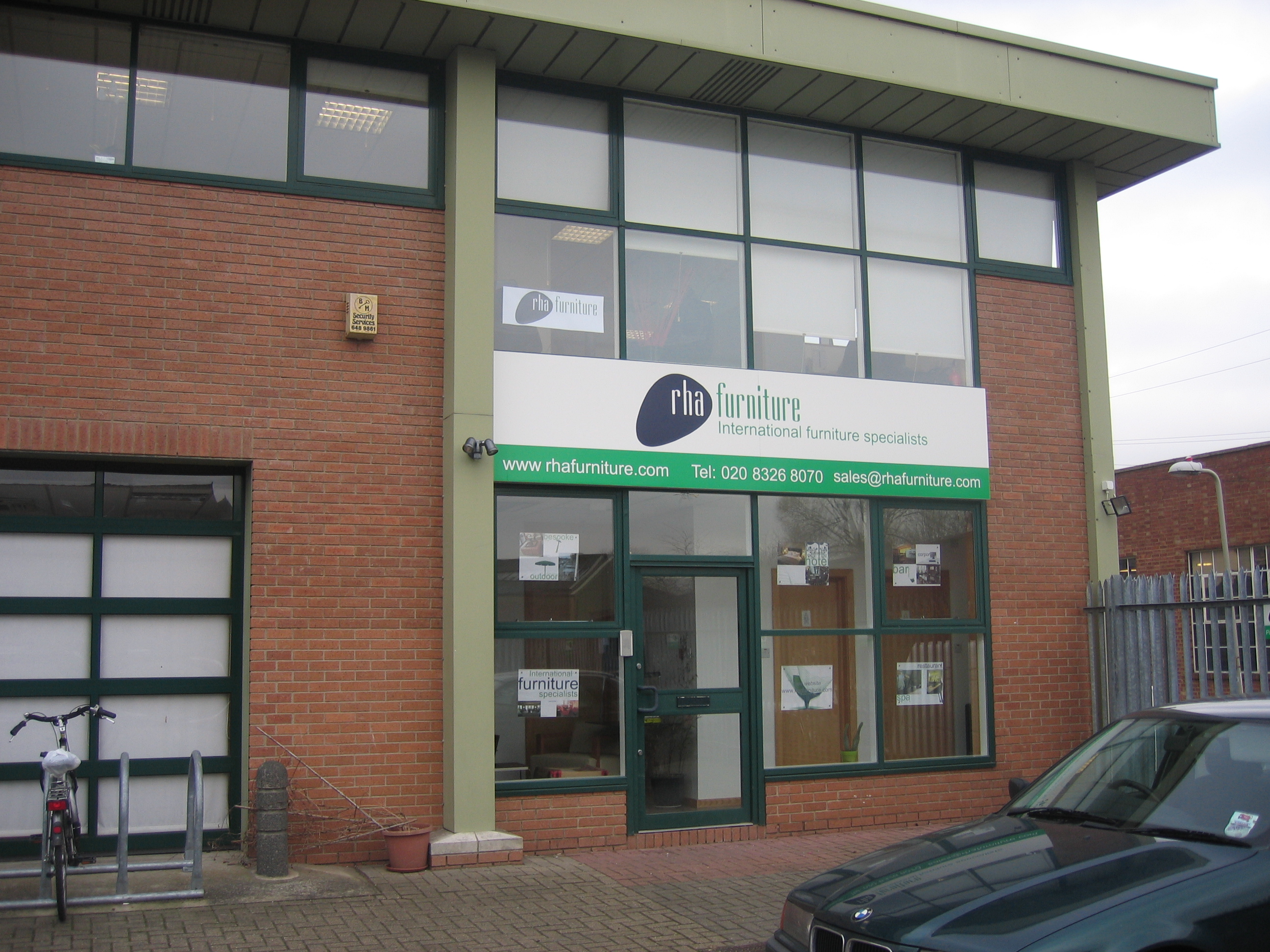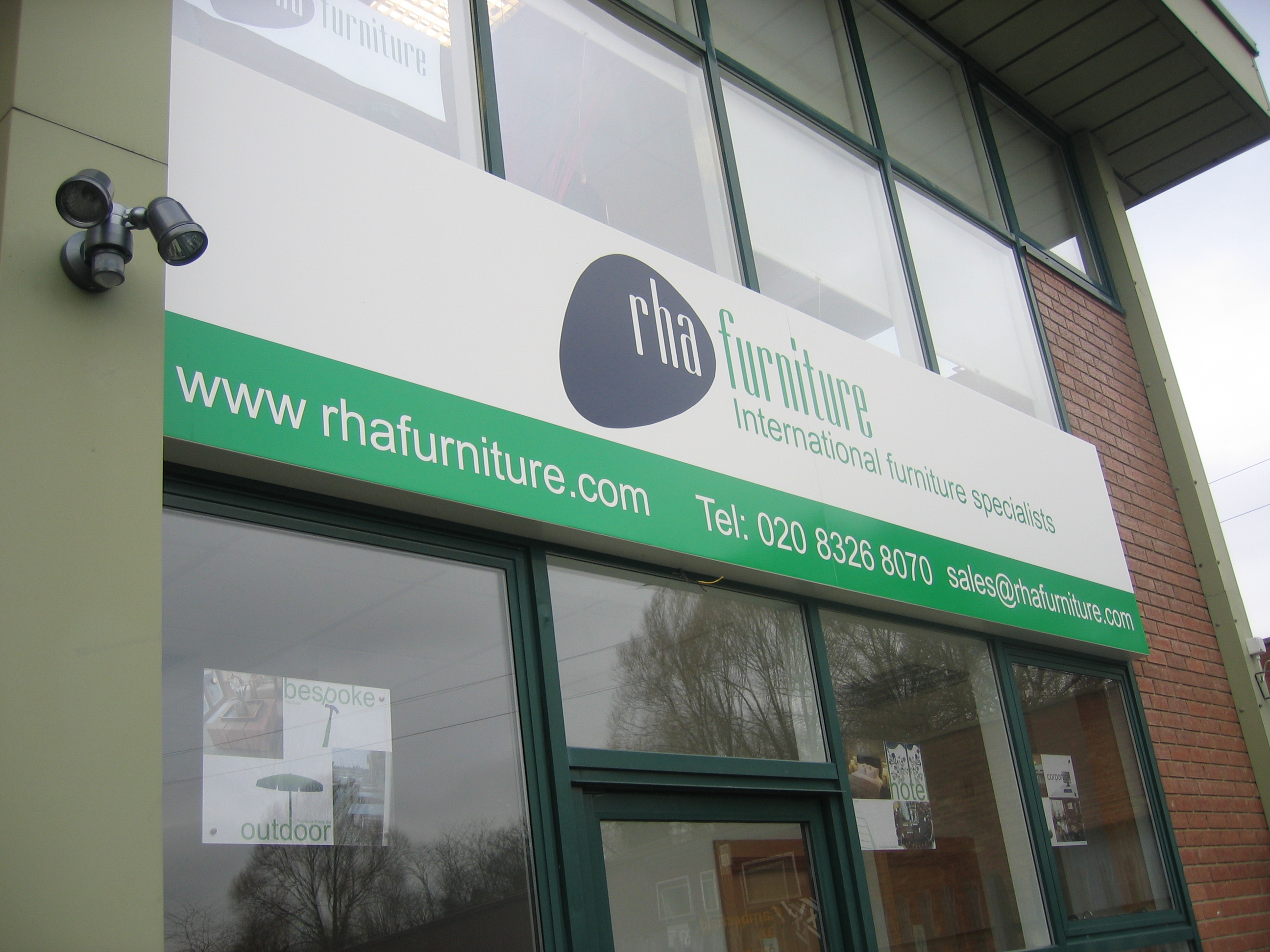 Sign for Industrial Estate Furniture Shop Fascia for furniture showroom located within trading estate. Multi-colour vinyl graphics applied to aluminium powder-coated sign. Shop SignsFolded Aluminium Share this sign