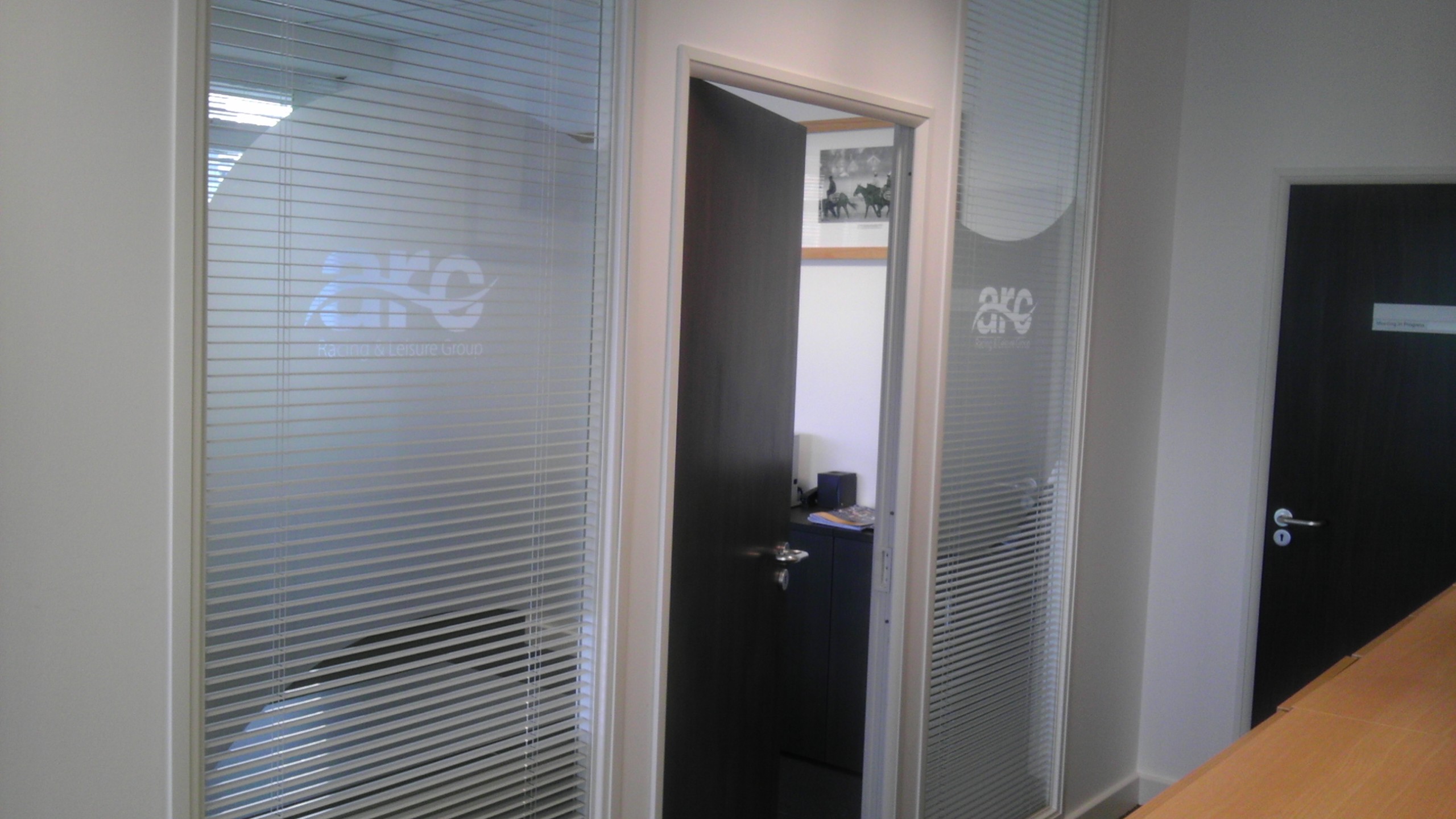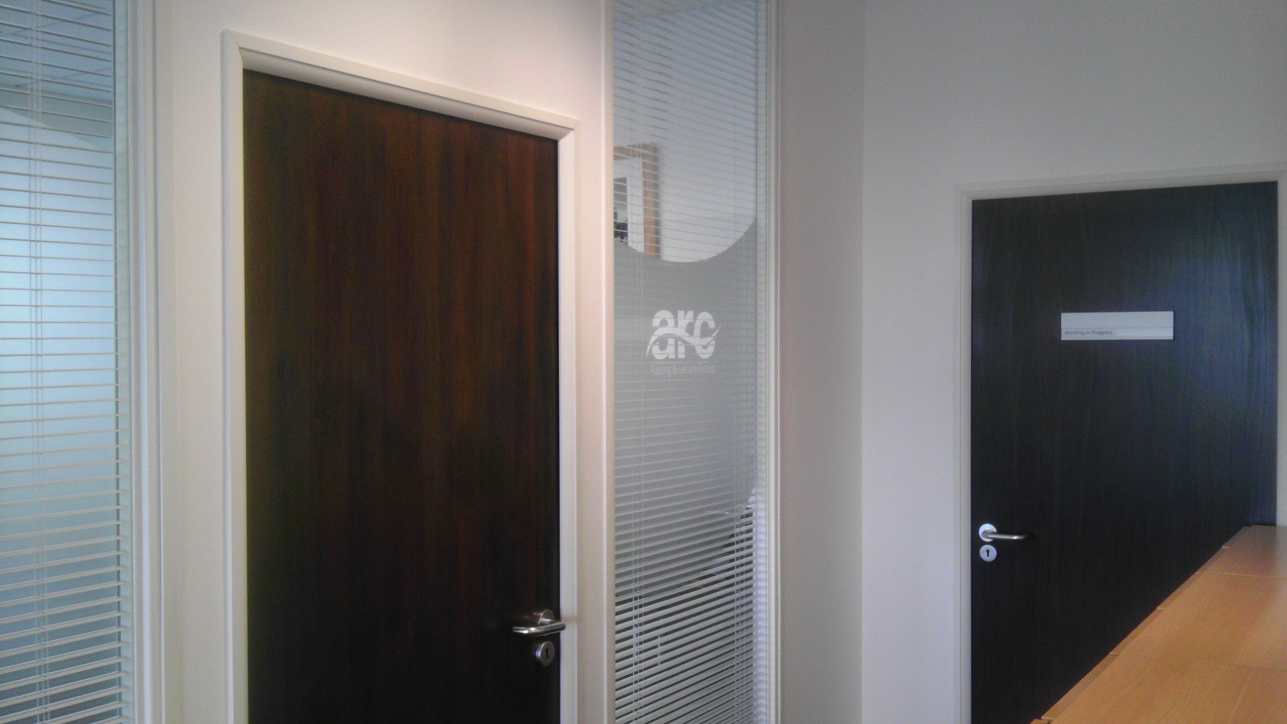 Applying frosted film to internal office surfaces such as windows and internal doors subtly reinforces your corporate brand and where required helps preserve privacy.