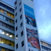 Vinyl banners can be manufactured in any size. Accordingly they are ideal for large installations on the external walls of buildings toĀ prominently display a brand.Ā Our installation team has their cherry-pickers at the ready and the appropriate qualifications to safely fix vinyl banners high in the sky so thatĀ the whole world hears your message. Ideal where installations must be temporary for business or planning permission issues.