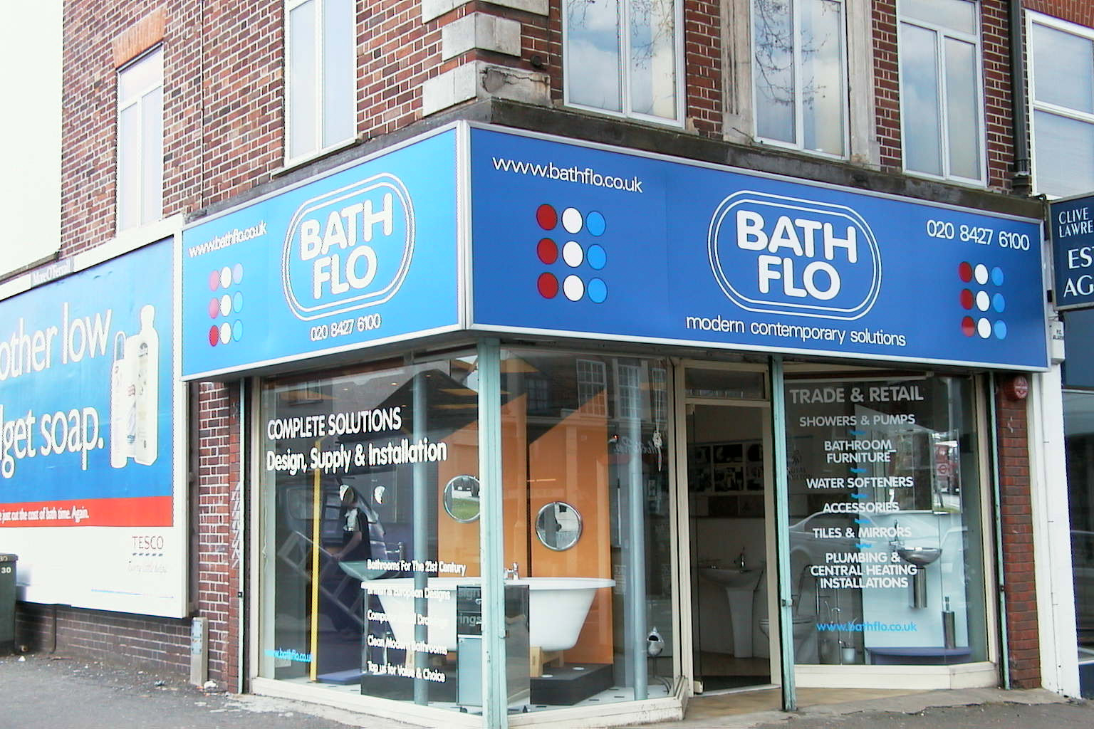 Vinyl Graphics Shop Fascia Vinyl graphics applied to the shop fascia for this bathroom showroom. Shop Signs Share this sign