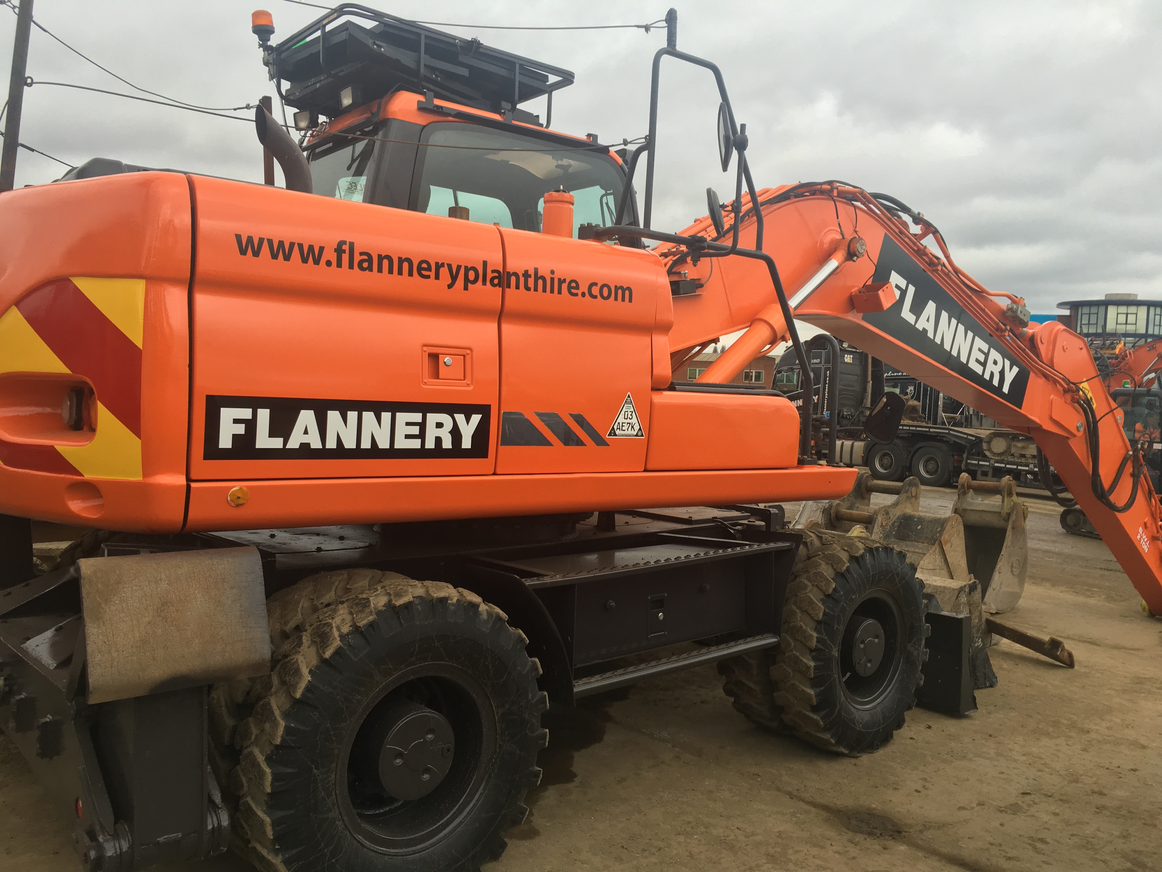 Wheeled Excavator Vehicle Signs Wheeled excavator vehicle graphics for Flannery. Simple black vinyl graphics with reflective rear chevrons. Construction SignsVehicle GraphicsPlant and Haulage Share this sign